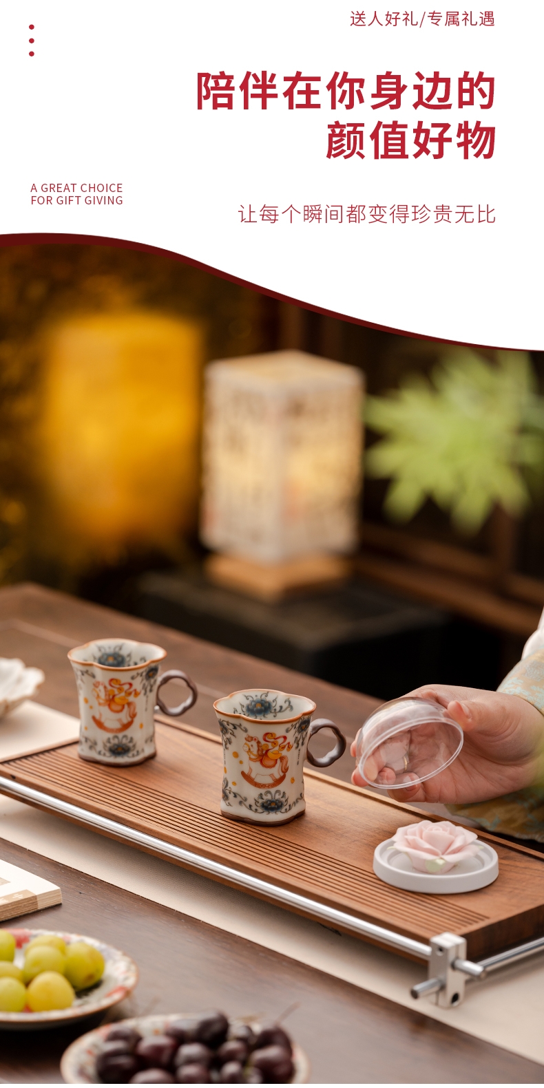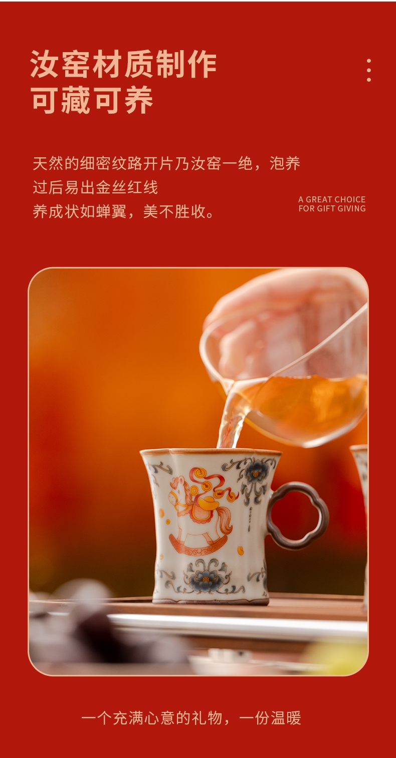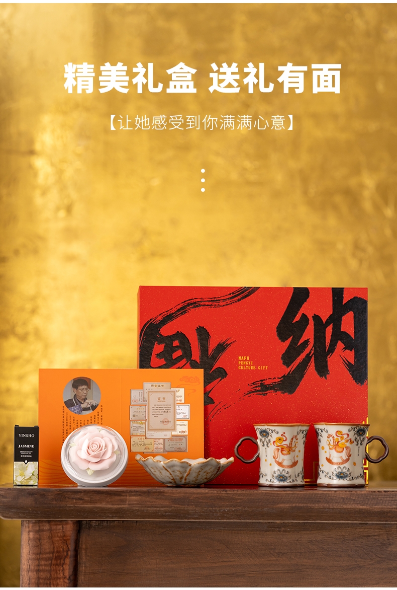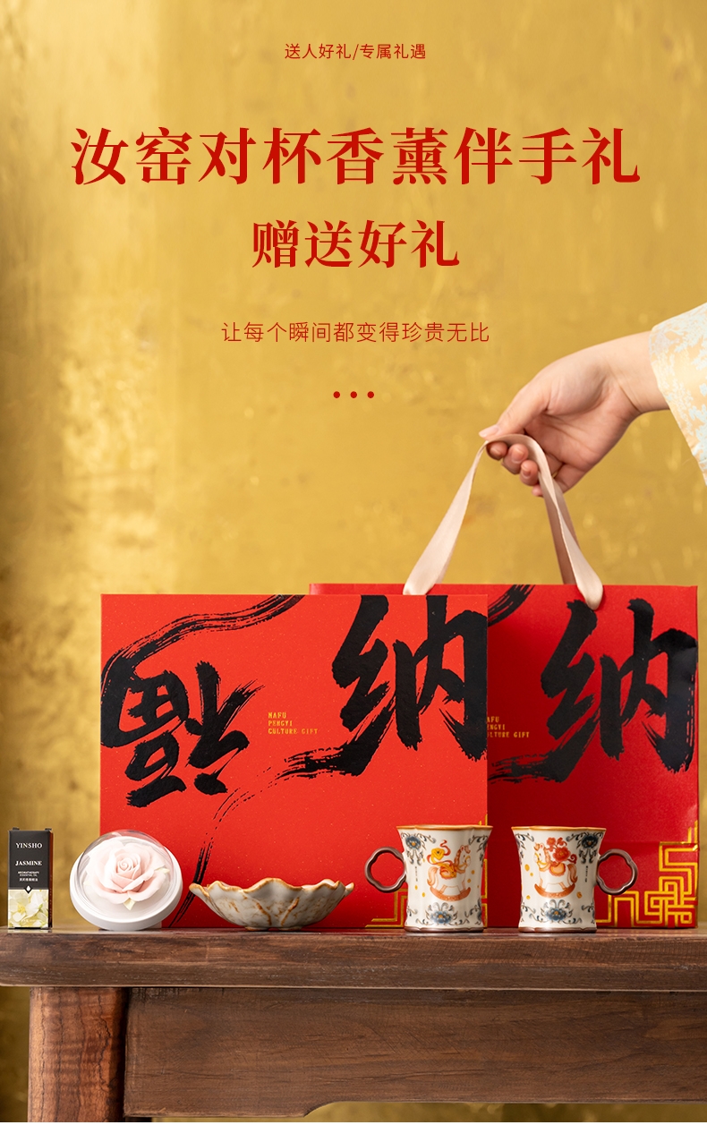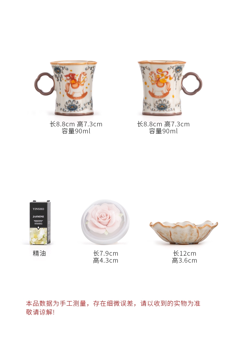 马上有钱杯子香薰套装,非遗文化手工瓷雕玫瑰;扩香器,配精油一瓶。亚黄汝瓷,玛瑙入釉,蝉翼开片;内外皆有花面,家有千财万贯,不如汝窑一片。独家专利