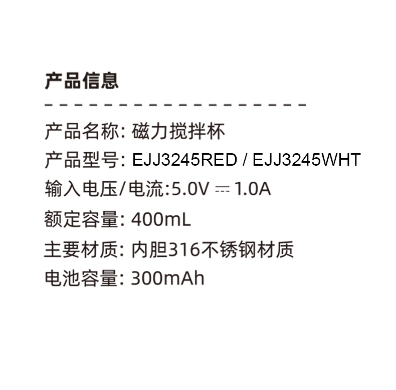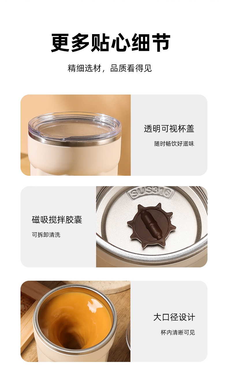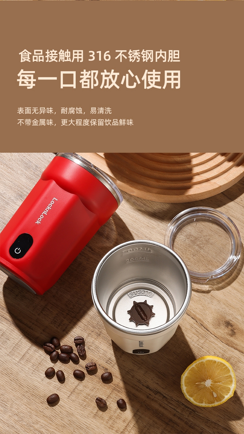 AS安全材质,内胆316安全材质;Type-C充电接口,充电方便;高速磁力搅拌刀头,快速均匀搅拌;温度显示,不烫口