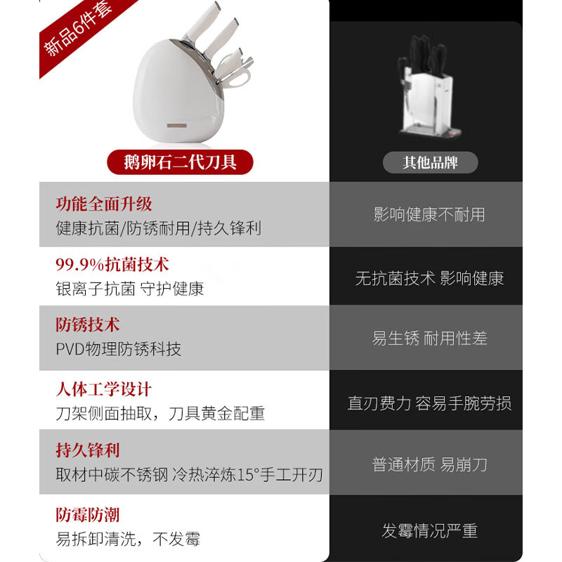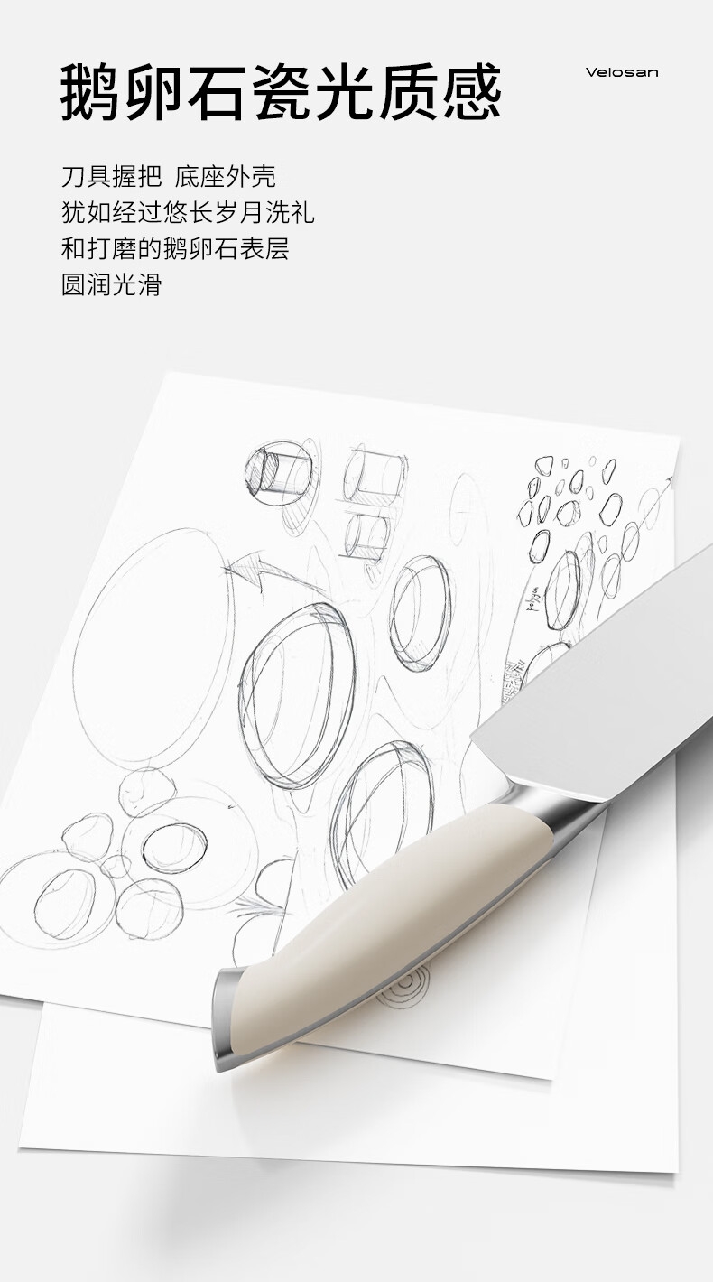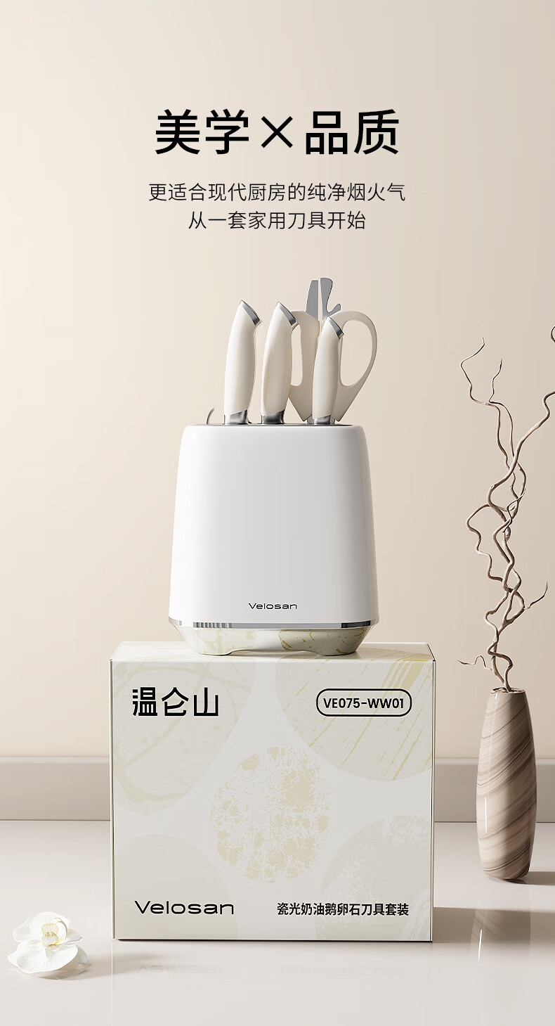温仑山 鹅卵石抗菌刀具套装象牙白6件套A-VP-2ETD02