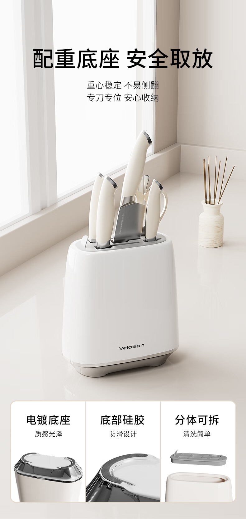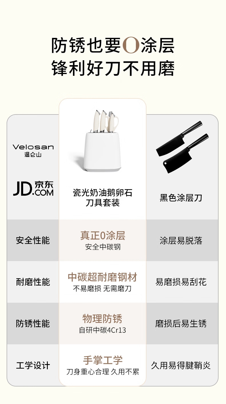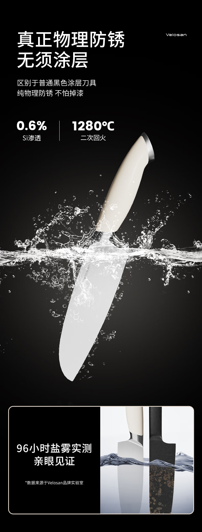 高品质中碳不锈钢,持久锋利;抗菌率99%,安全卫生 PVD磁控技术处理,;物理防锈; 黄金15°V型,超切快感