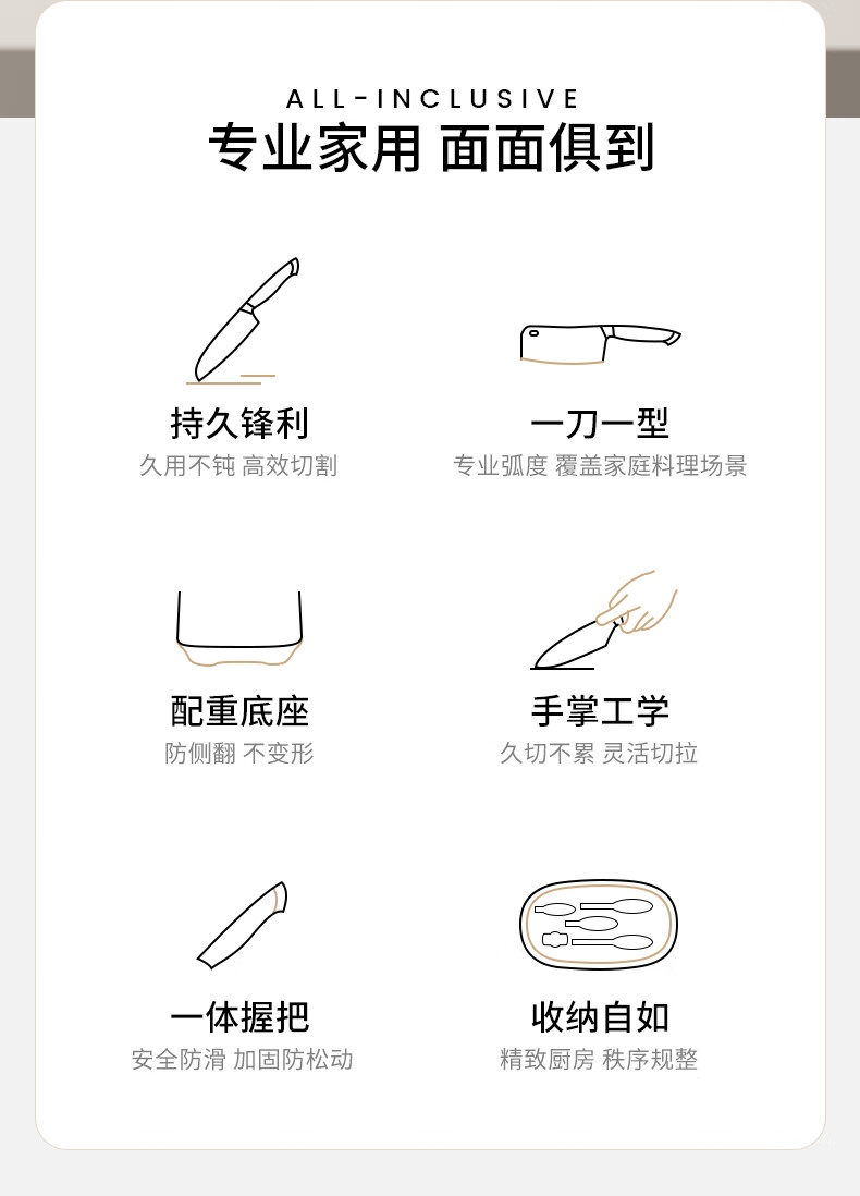 规格:砍骨刀+菜刀+厨师刀+水果刀+剪刀+刀座