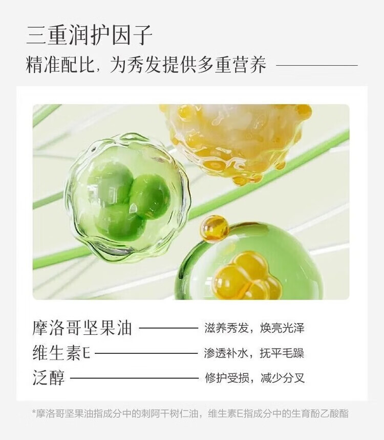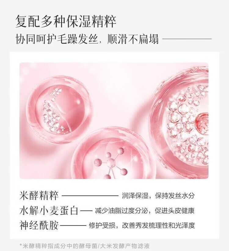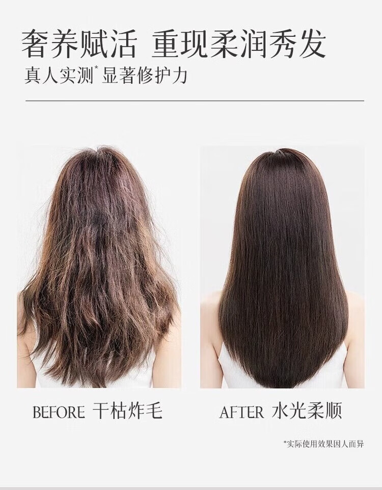 净澈头皮,洁净头发脏污;柔顺飘逸,改善毛躁打结;盈亮光泽,补充秀发营养