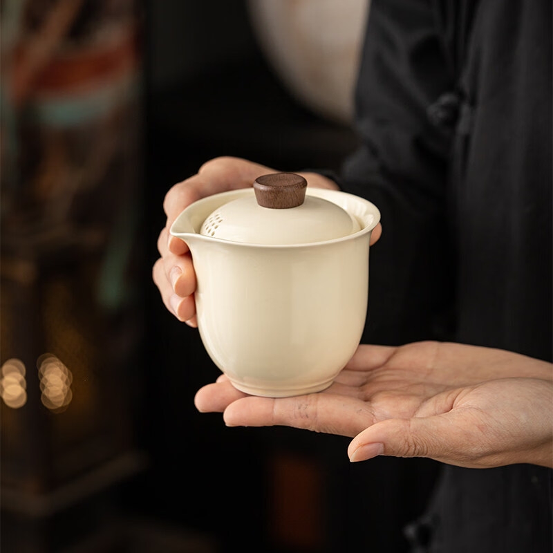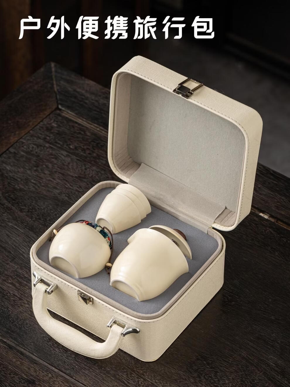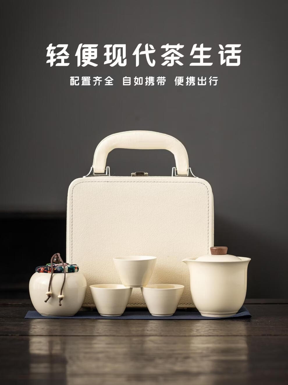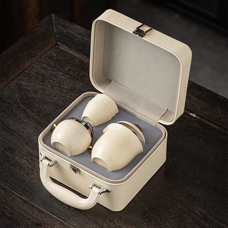 辞蕴 米黄旅行茶具一壶一罐三杯