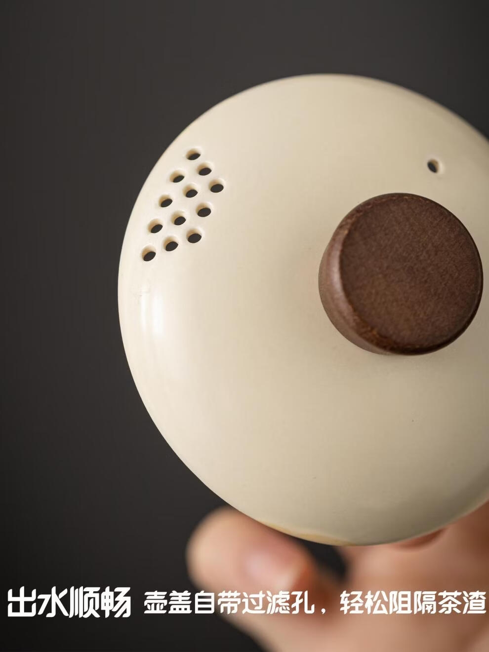 隔热防烫, 持握舒适;仿鹰嘴式造型设计,出水利落; 壶盖自带过滤孔,轻松阻隔茶渣