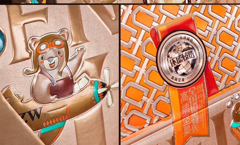 区别方正的传统礼盒;采用屋顶盒包装设计,奢华烫金的包装风格不改;加宽了盒面的宽度和高度,使礼盒更加大气