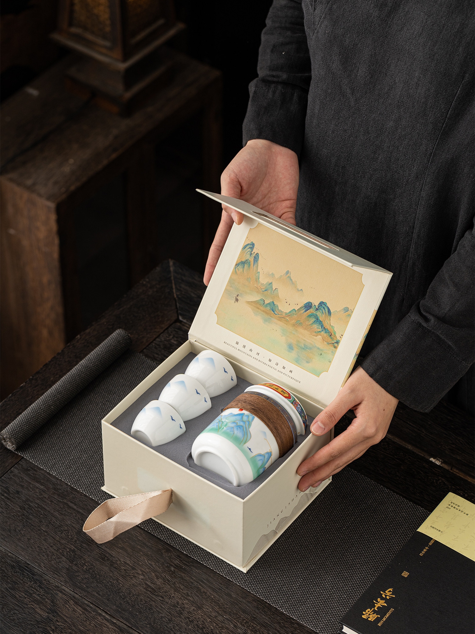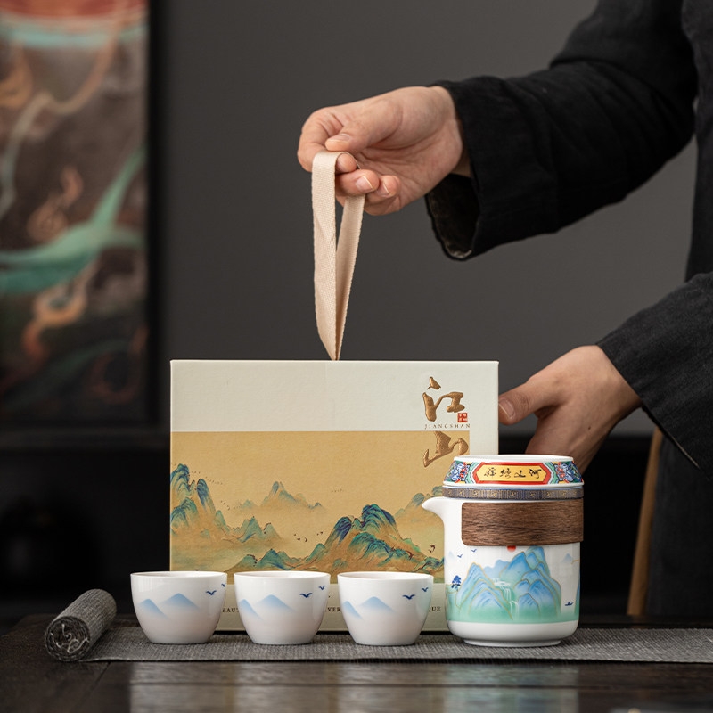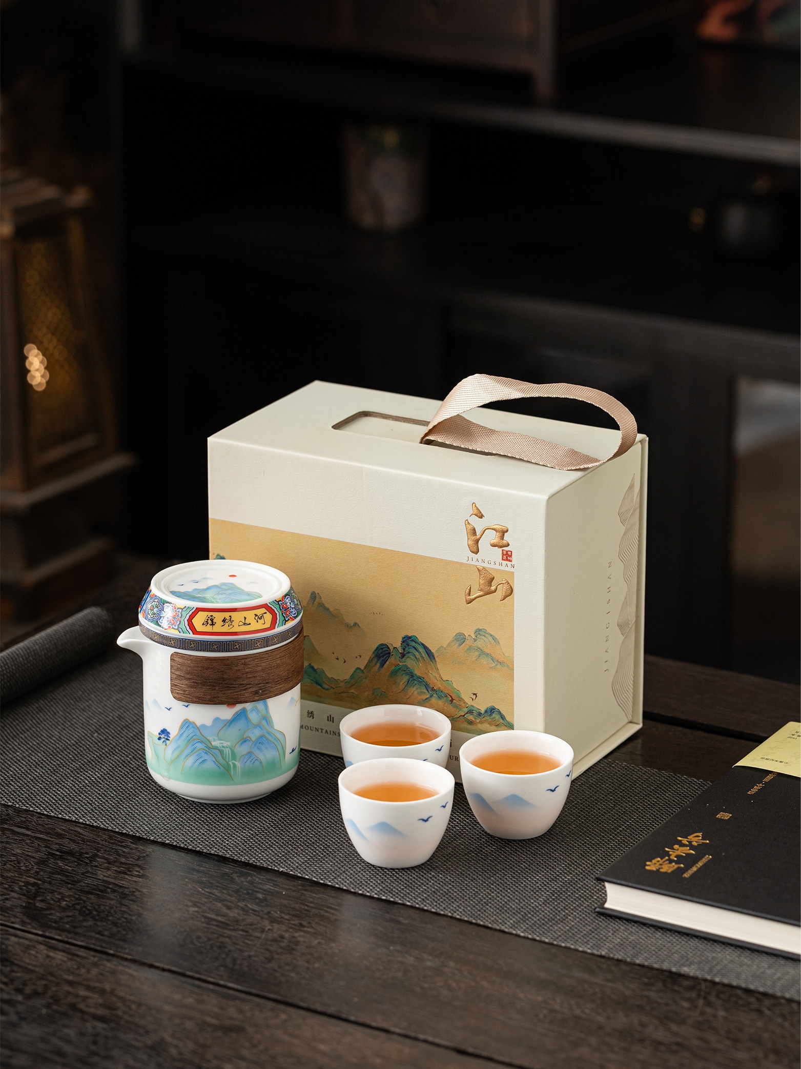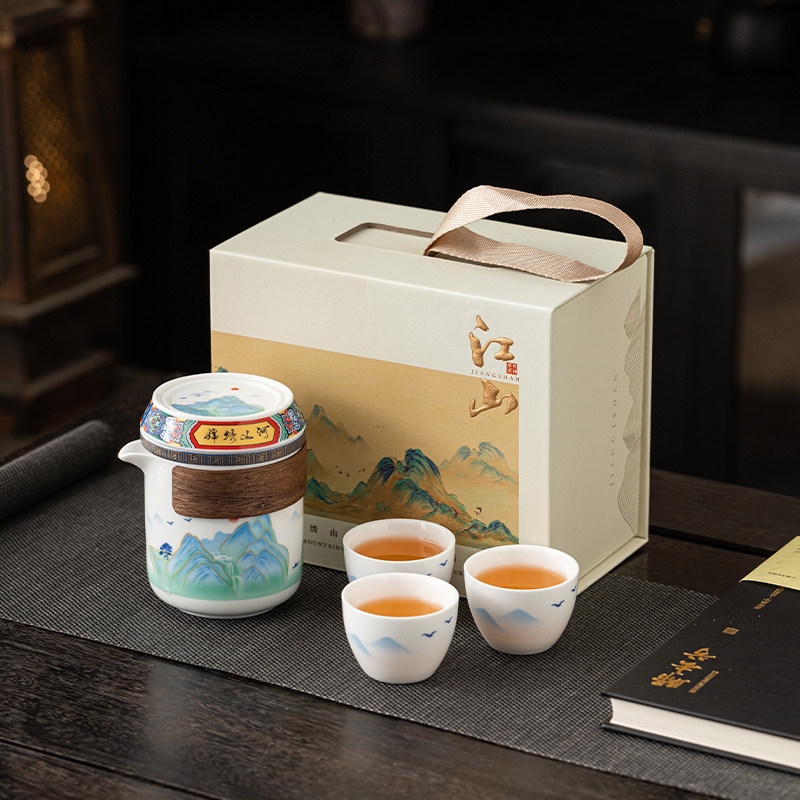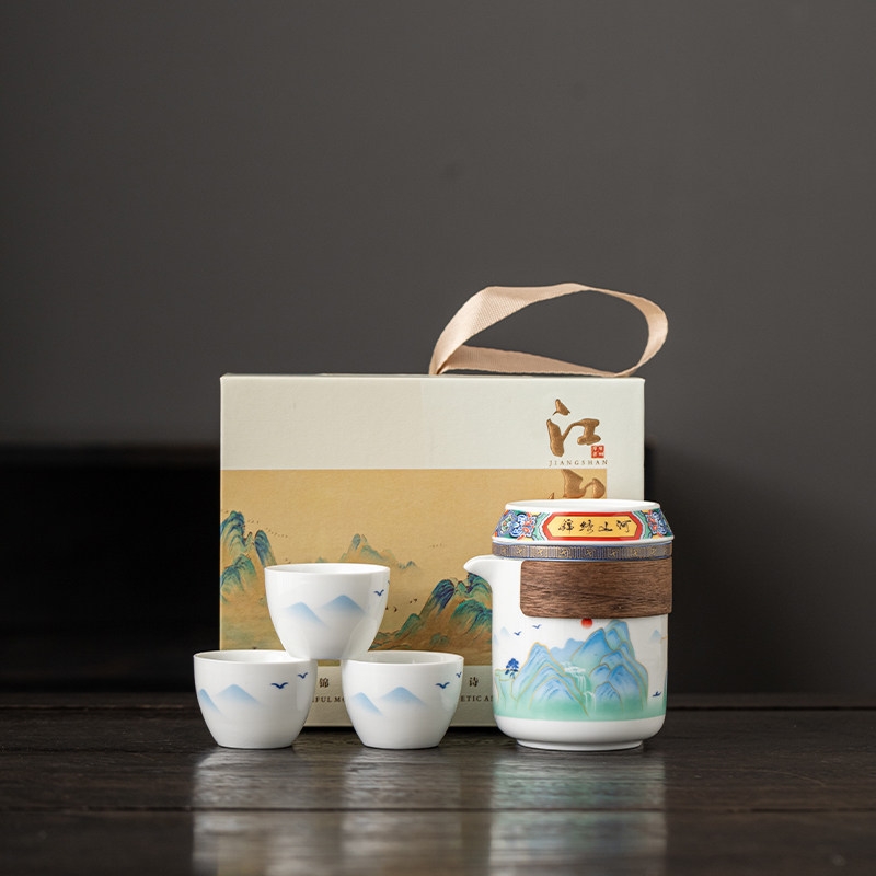 缜密全瓷材质过滤,轻松茶水分离;杯身防烫杯垫设计,防烫防滑;精美锦绣山河,秀丽山川,栩栩如生