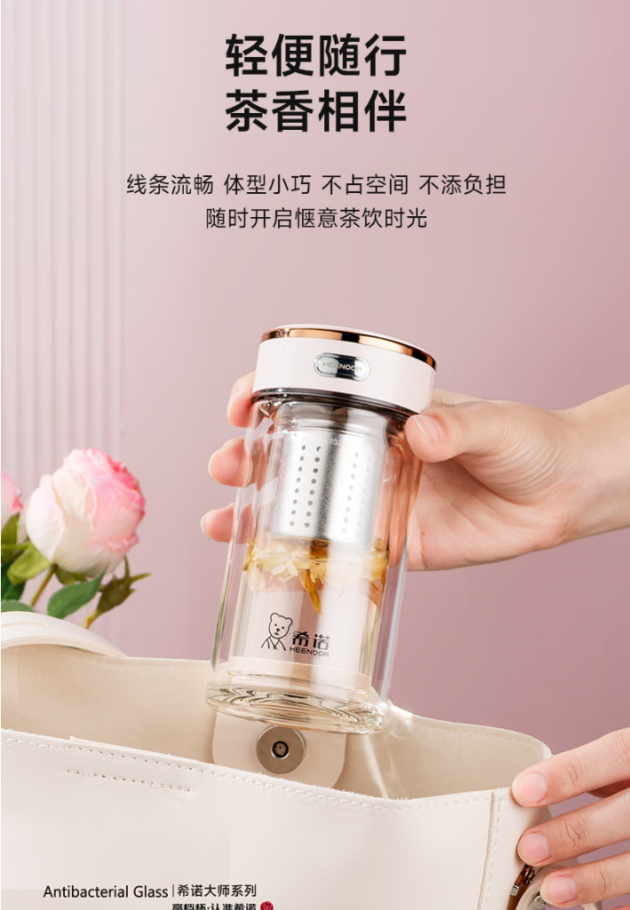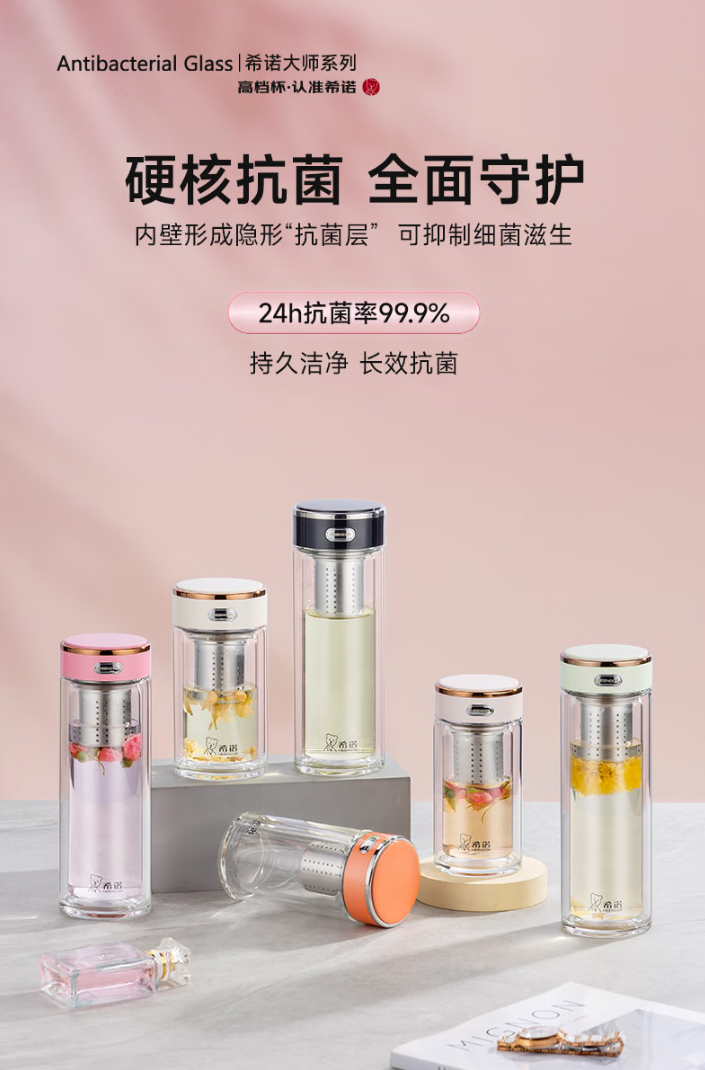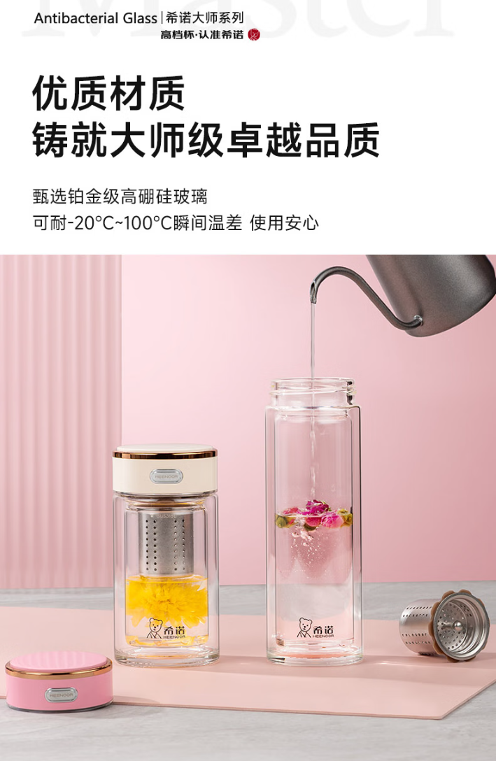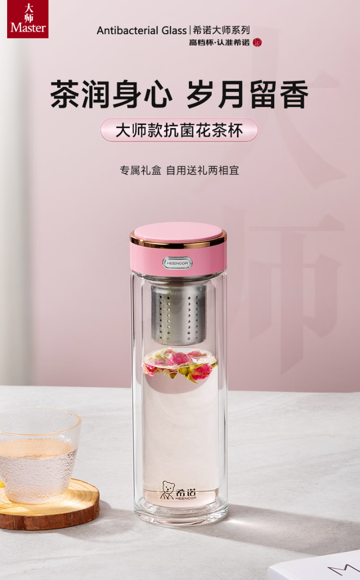 希诺新品大师系列 抗菌花茶杯 女士优选;线条流畅 体型小巧 不占空间 不添负担;好杯配好装 送礼更大气
