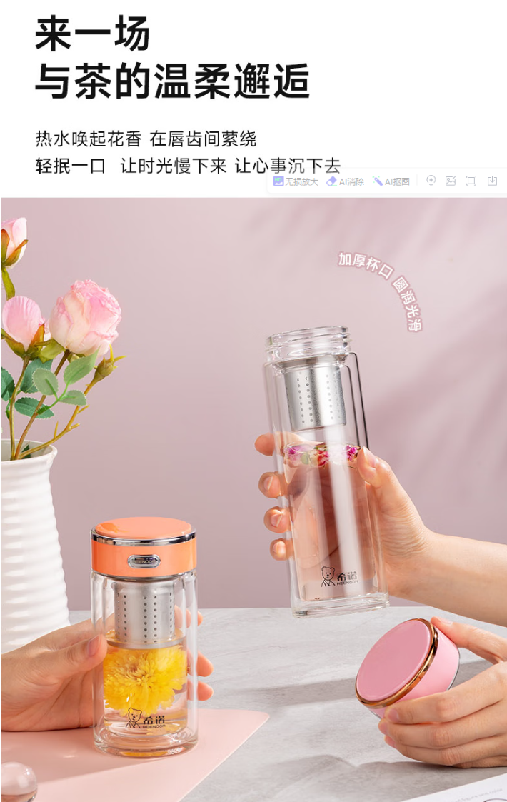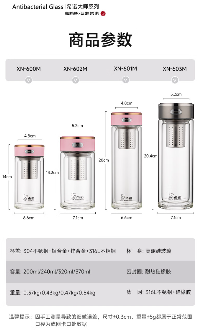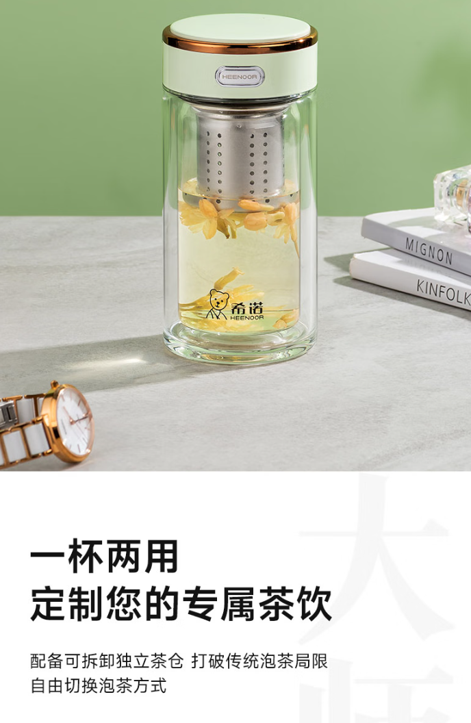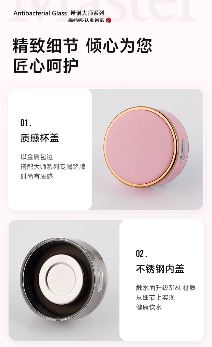 希诺新品大师系列 抗菌花茶杯 女士优选;线条流畅 体型小巧 不占空间 不添负担;好杯配好装 送礼更大气