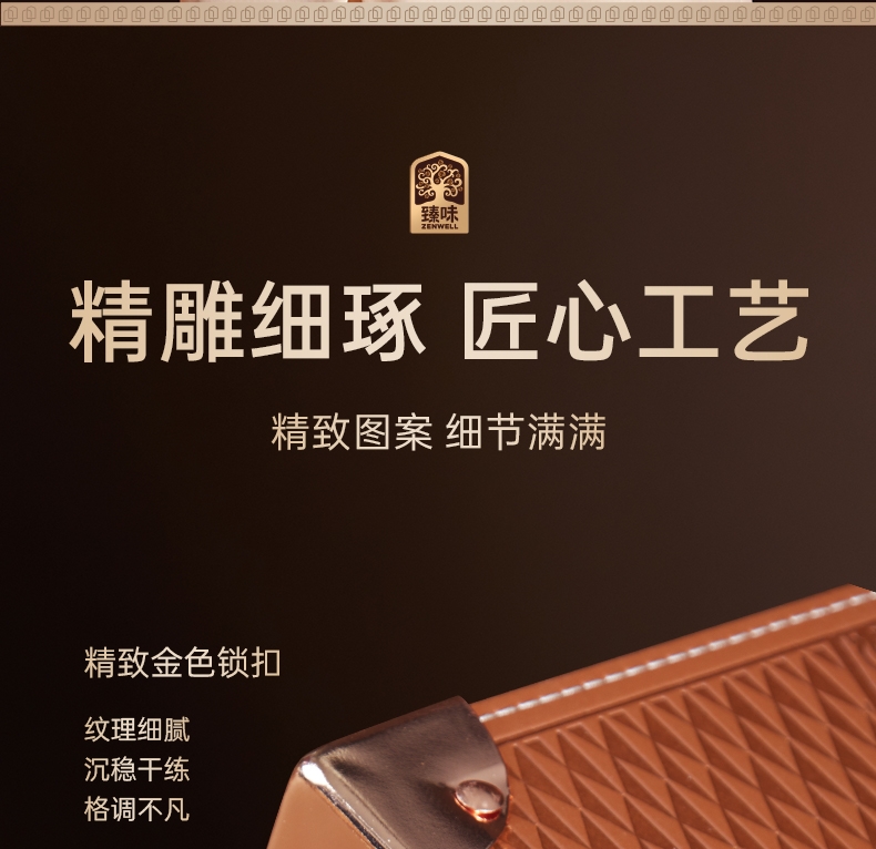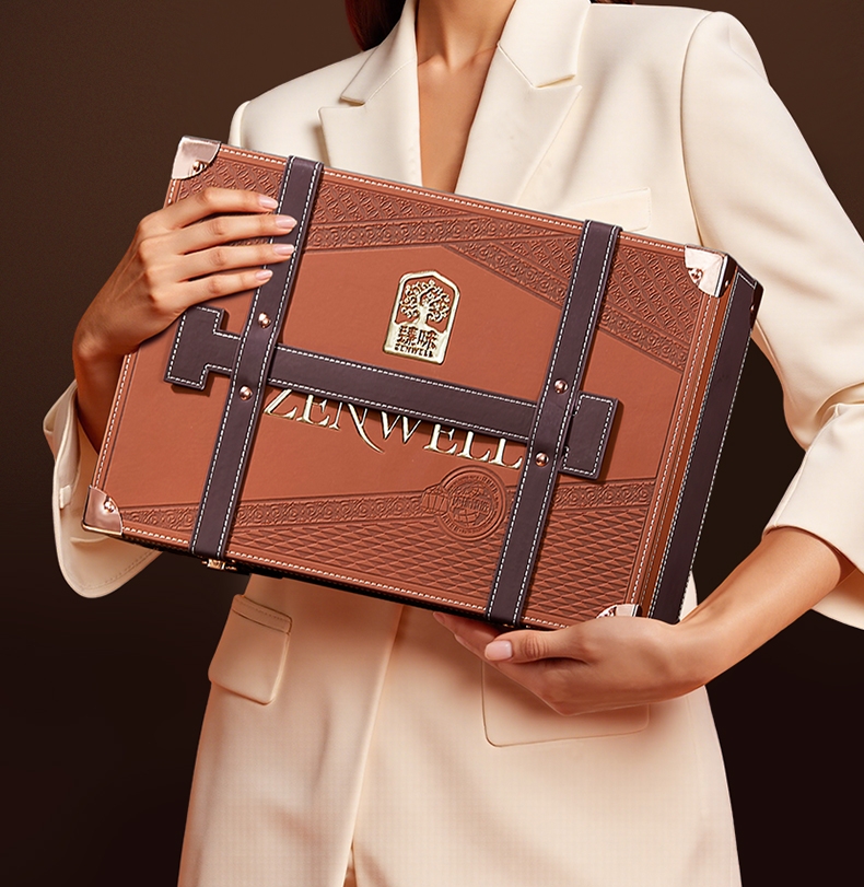 经典天地盖盒型,优雅复古色调;皮革绑带与金属扣件增添细节;颜值出众,营造出复古且珍贵的氛围