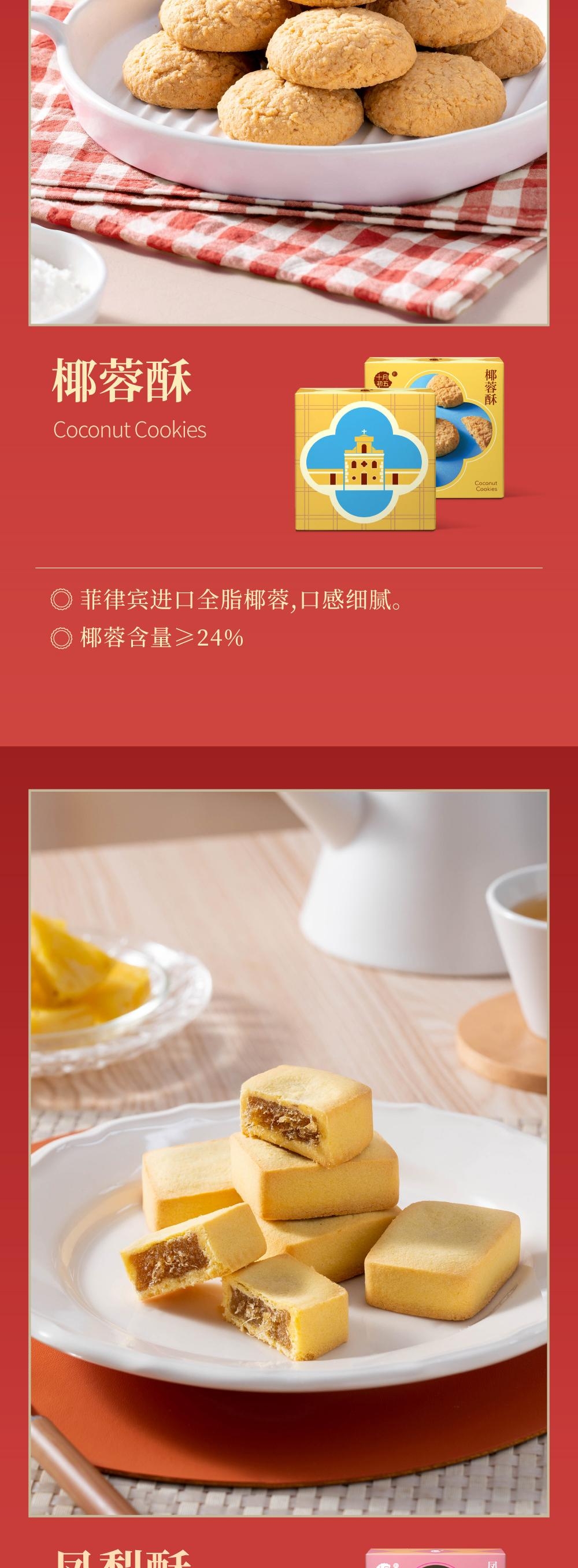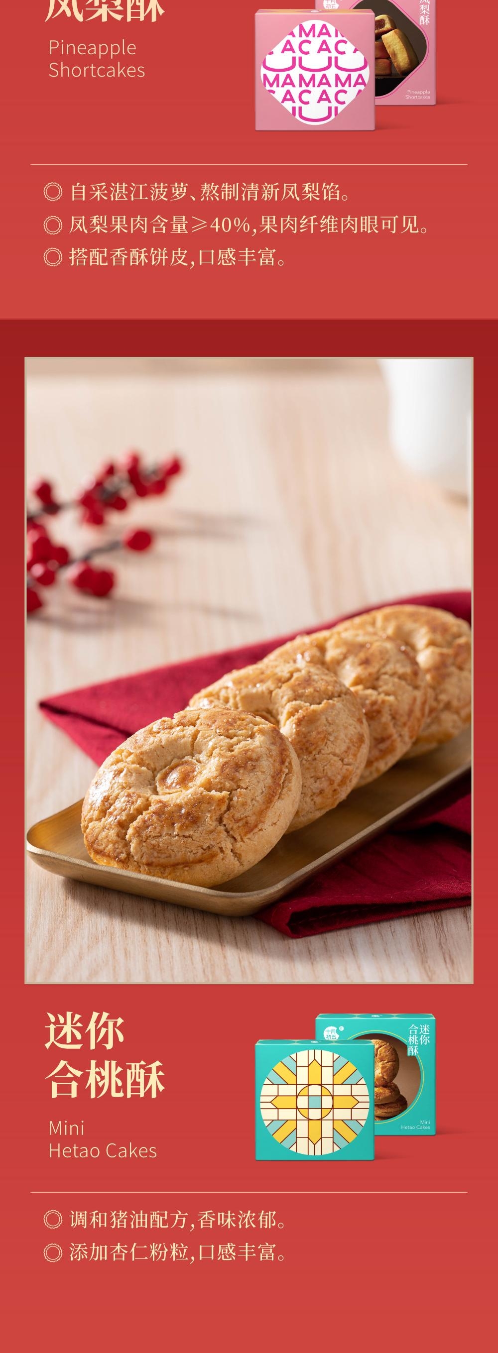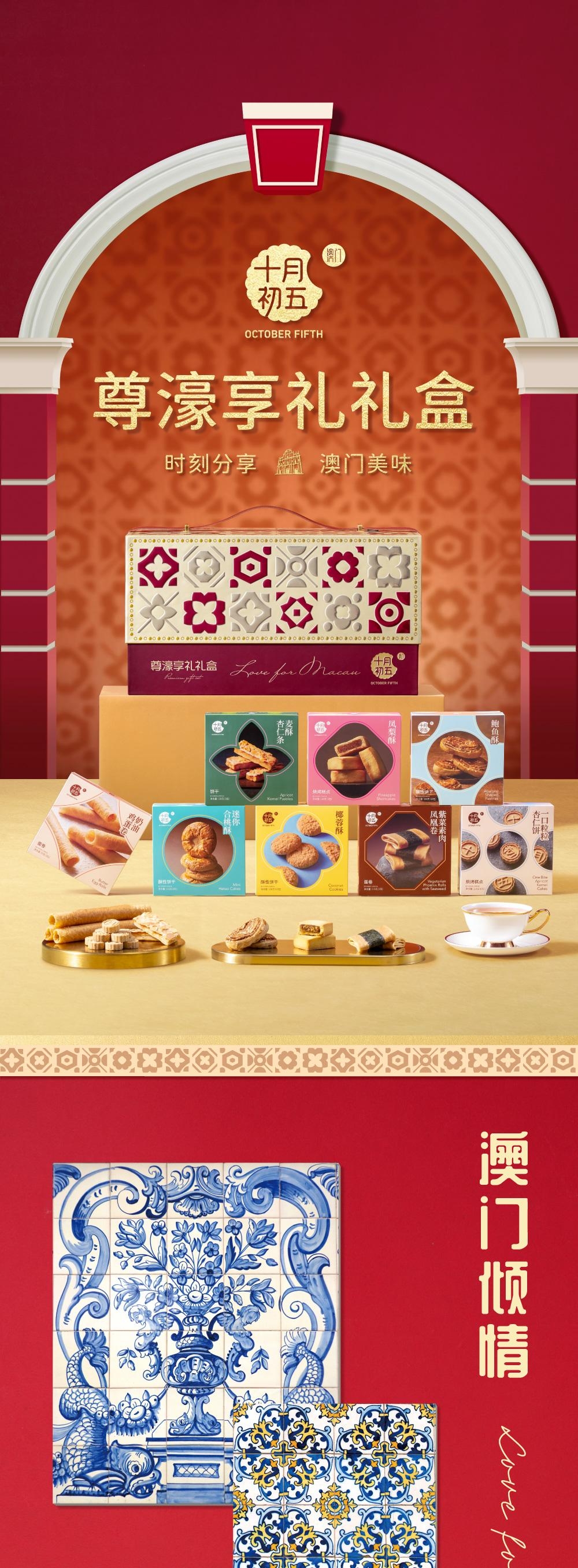 配置清单:1、十月初五93g奶油鸡蛋卷(澳门倾情系列)X1盒 2、十月初五180g凤梨酥(澳门倾情系列)X1盒 3、十月初五180g鲍鱼酥(澳门倾情系列)X1盒 4、十月初五113g紫菜素肉凤凰卷(澳门倾情系列)X1盒 5、十月初五120g麦酥杏仁条(澳门倾情系列)X1盒 6、十月初五154g一口粒粒杏仁饼(澳门倾情系列)X1盒 7、十月初五156g椰蓉酥(澳门倾情系列)X1盒 8、十月初五176g迷你合桃酥(澳门倾情系列)X1盒 注:高端礼盒