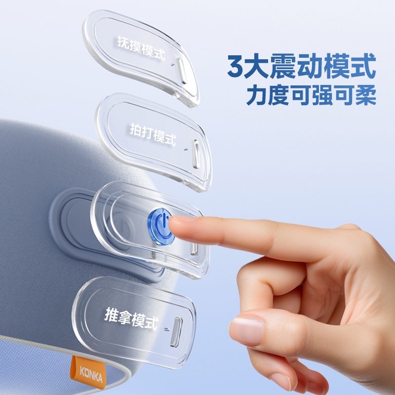 前颈部承托,后颈部振动按摩+热敷;缓解颈部肌肉疲劳与酸痛,释放紧张情绪;可折叠携带