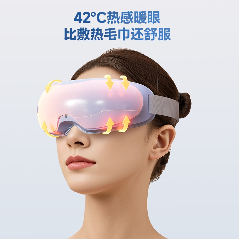 气囊挤压模拟手对眼部的按摩,放松眼部周围的肌肉;音乐放松长期紧绷的神经,舒缓心情;可折叠方便携带;透视窗可睁眼按摩;蛋白皮层肤感好