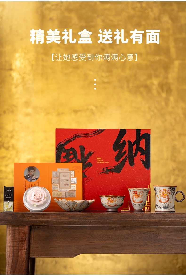 配 制:1手柄杯 1闻香杯 1碗 1香盘 1玫瑰瓷雕扩香器 1精油 1收藏证书 1礼盒 手提袋