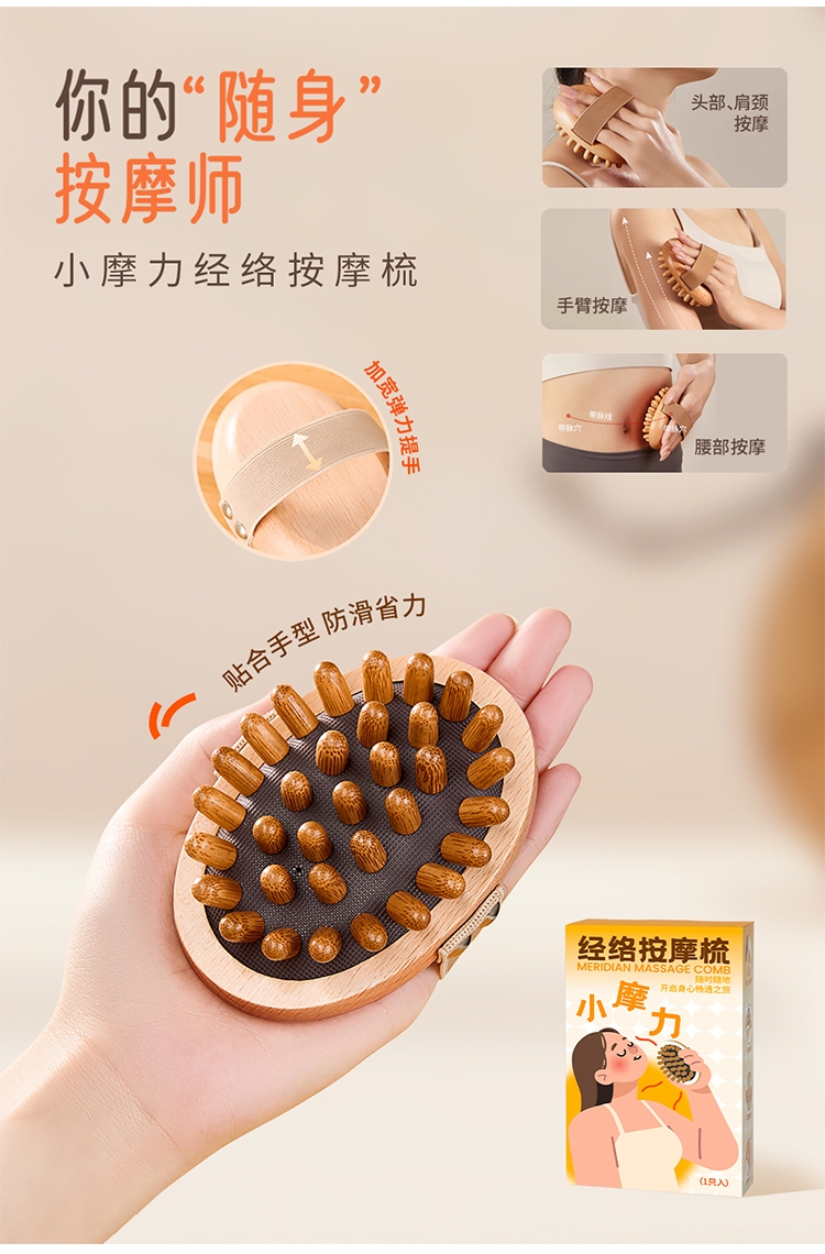 材质:收纳包/十字纹皮料+涤纶里料 按摩梳/榉木(主体木材+弹性基底+按摩头)