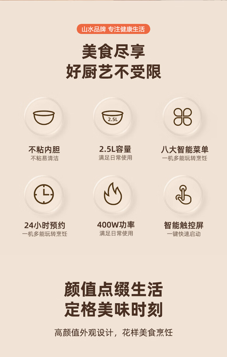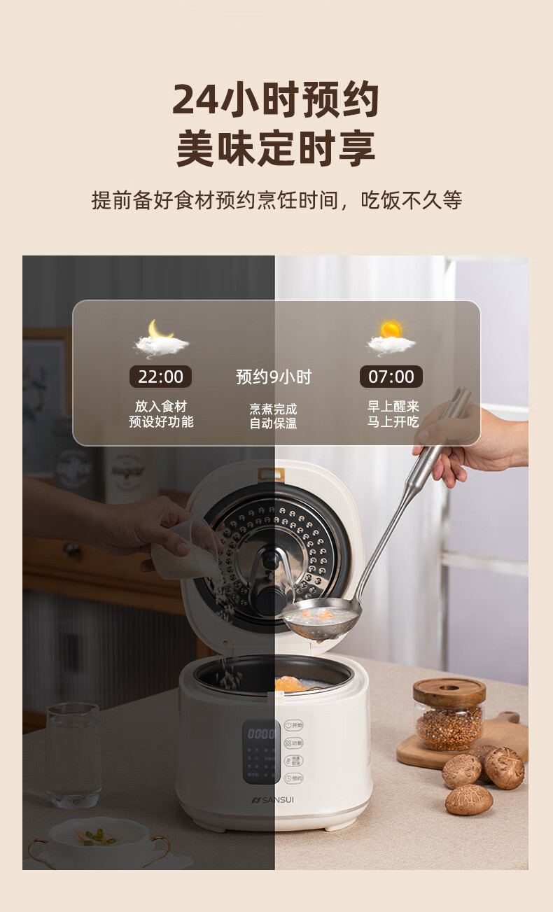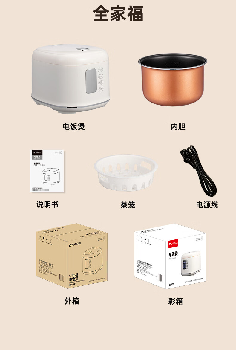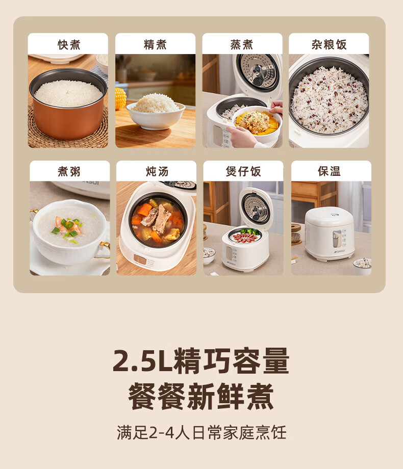 山水 多功能迷你电饭煲米白色2.5LSF-F25E3