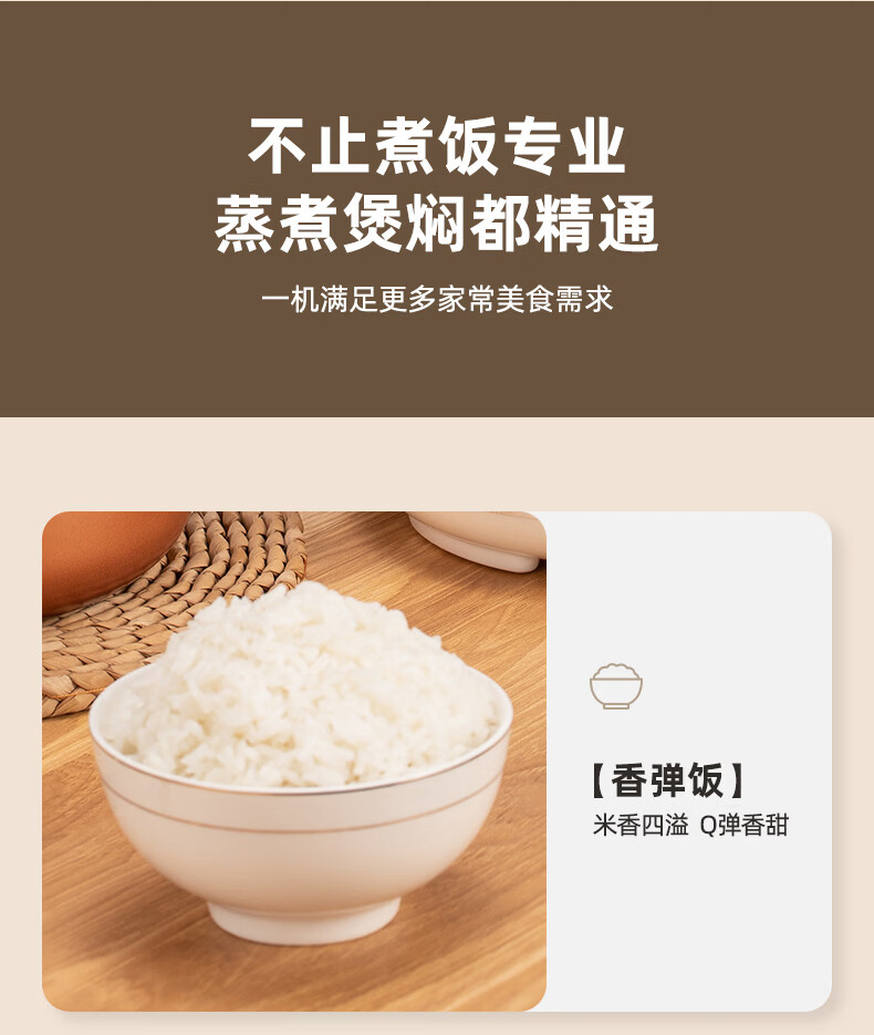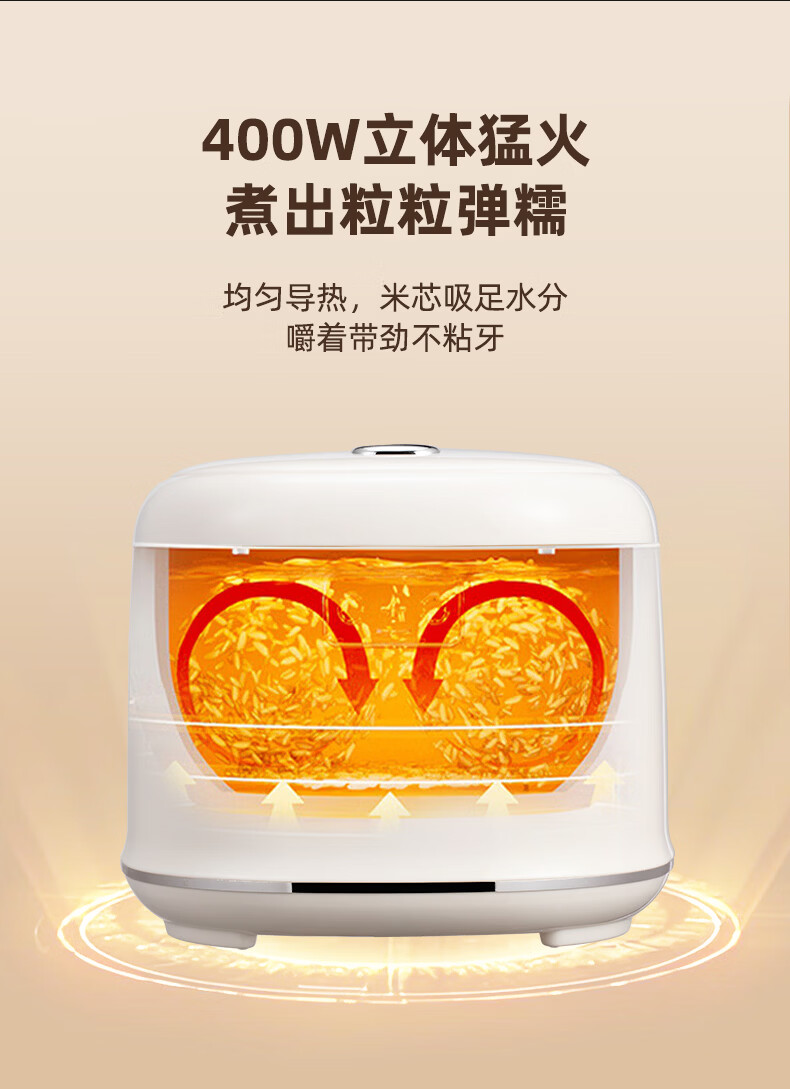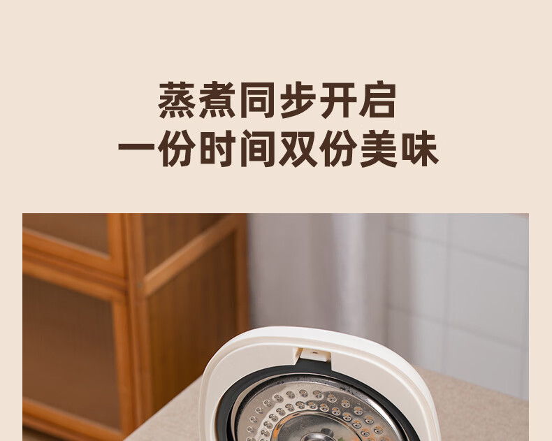 2.5L容量、微电脑控制、顶置微压阀、感温不溢锅;可拆式防溢保温盖、四位数码显示屏、24小时预约;8大智能菜单,快煮、精煮、蒸煮、杂粮饭、煲仔饭、煮;多功能迷你电饭煲带蒸笼可上蒸下煮;包装方式:彩盒+网购包装