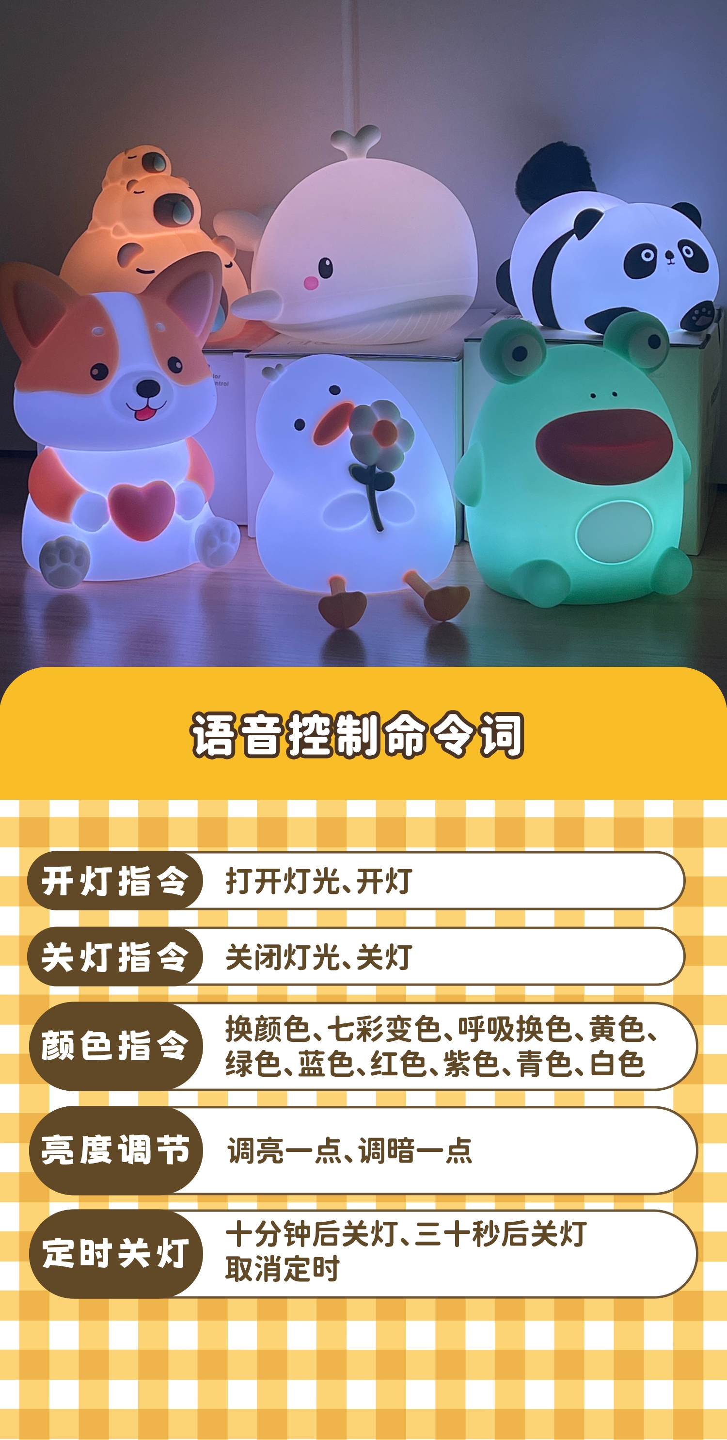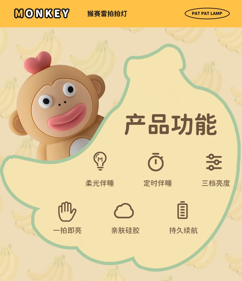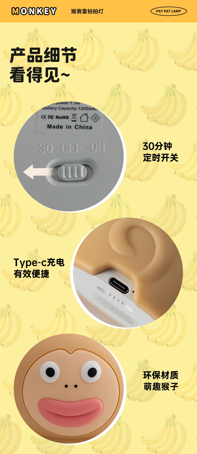 造型萌趣,颜值吸睛;硅胶材质,安全解压;定时节能,多效适配