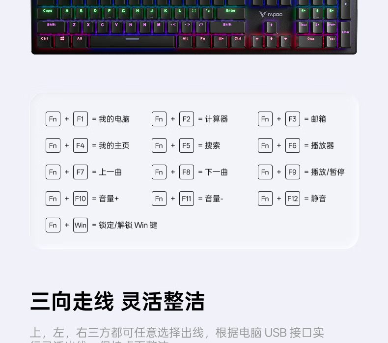 雷柏 彩色背光机械键盘V510