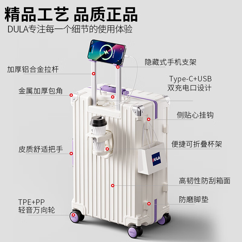 DULA 杯架USB拉杆箱26寸D2088-26寸