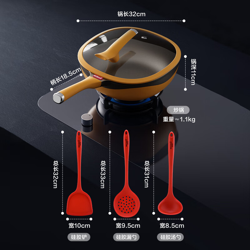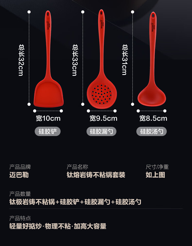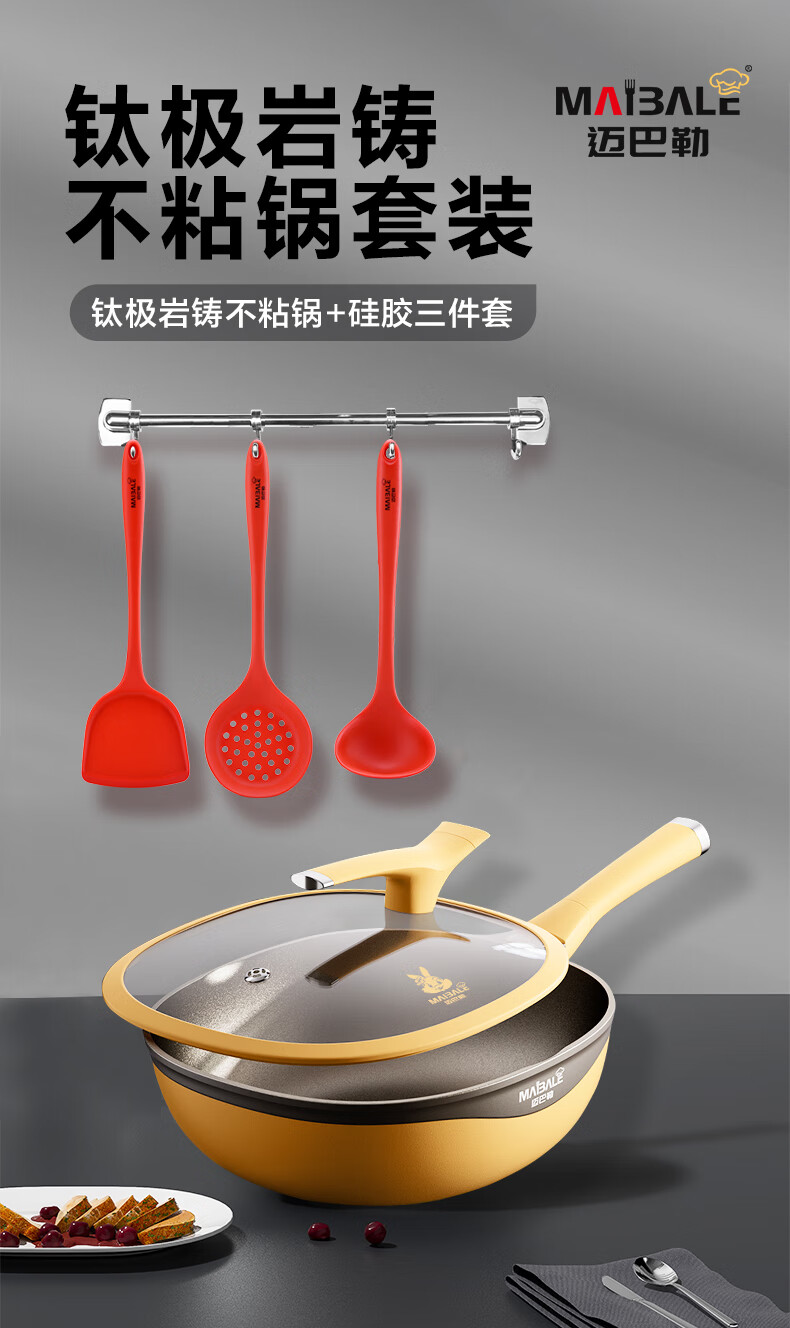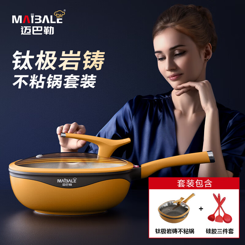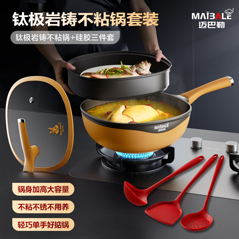 迈巴勒 钛极岩铸不粘锅套装32cmM-2212LP