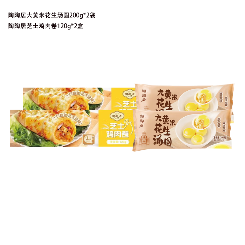 配置:陶陶居大黄米花生汤圆200g*2袋 陶陶居芝士鸡肉卷120g*2盒