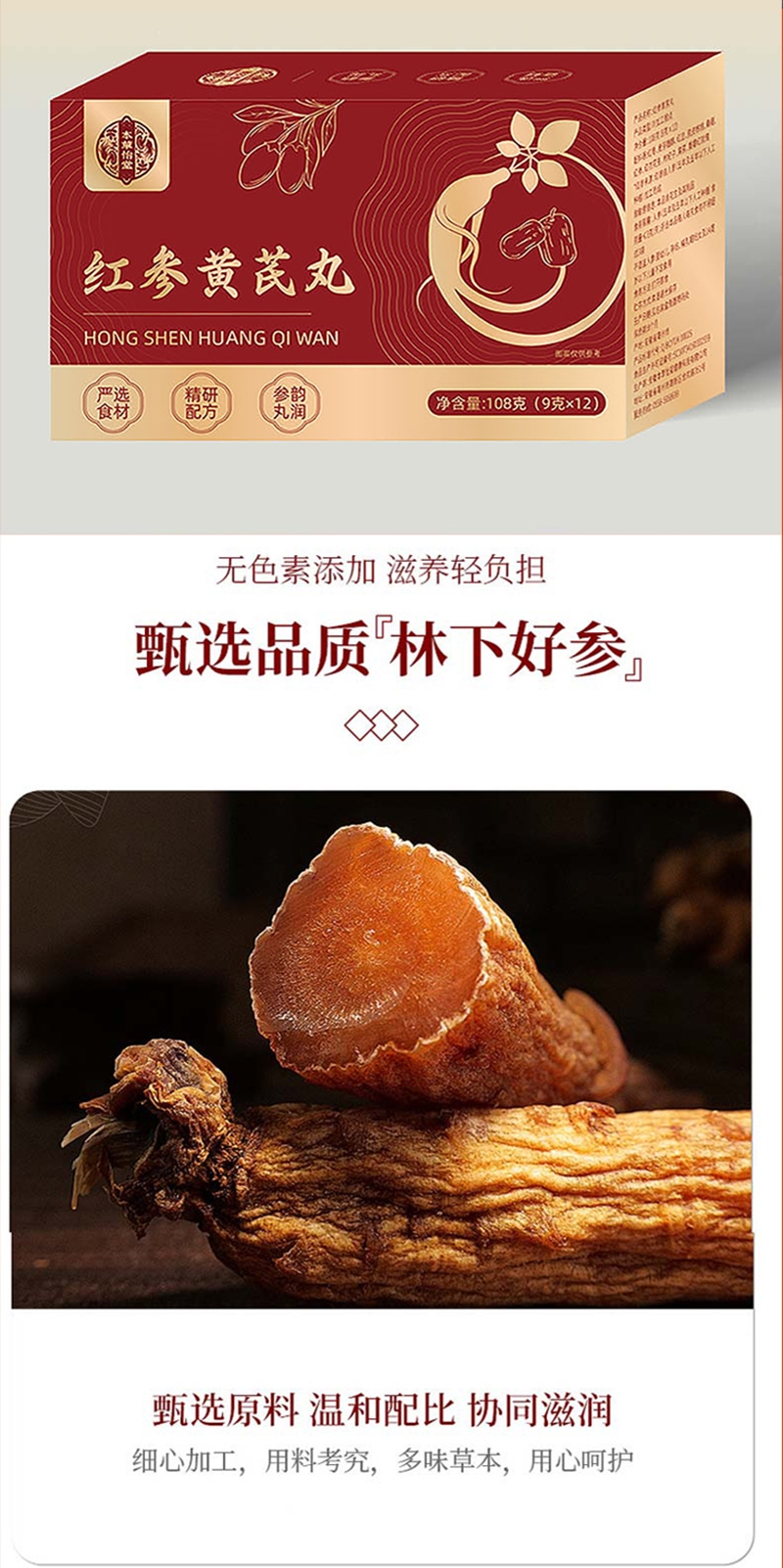 配置清单:鲜参蜜片50克+红参黄芪丸108克(9克/粒*12粒)*1+美通兔燃系列 无火香薰*1+南京同仁堂阿胶红糖玫瑰姜枣茶150g*1+胡雪岩堂枇杷秋梨膏300克*1+草编包*1