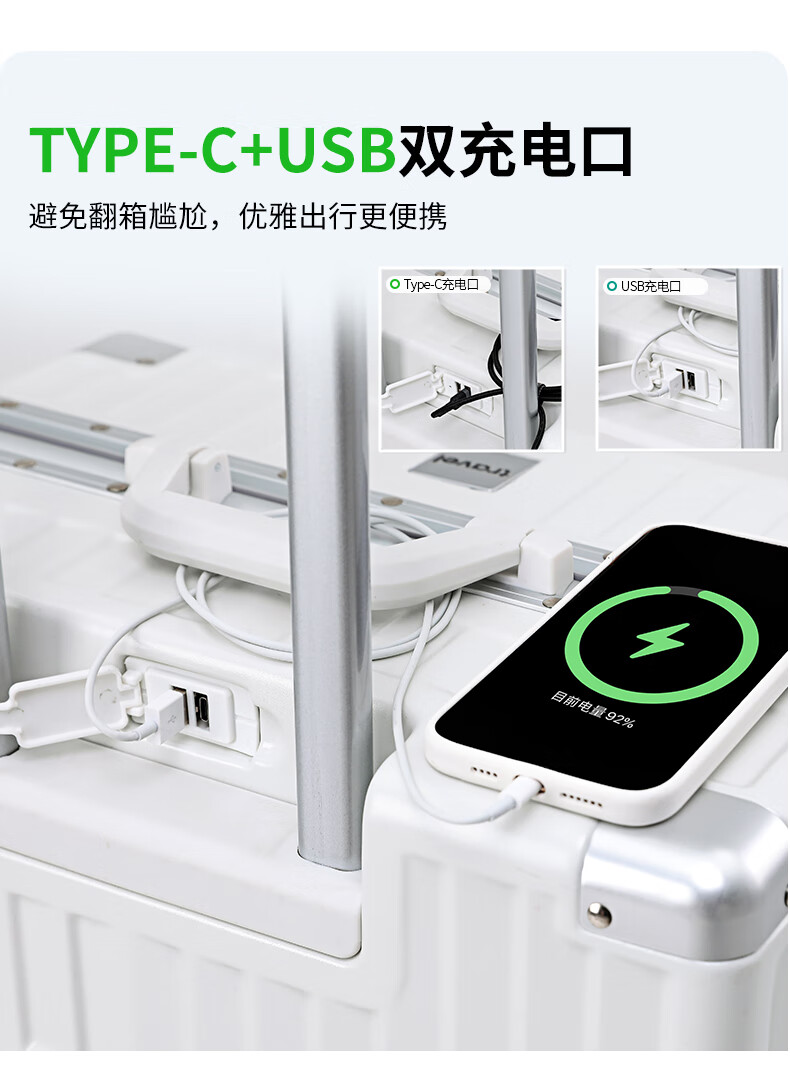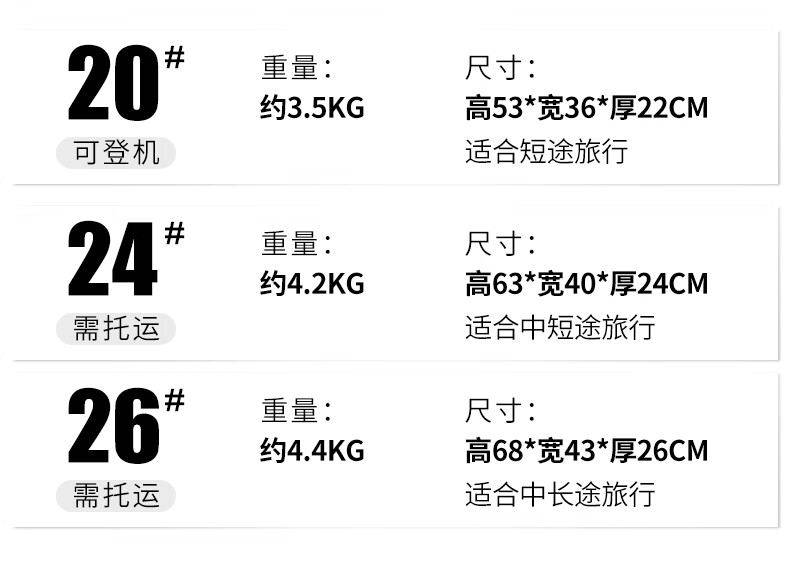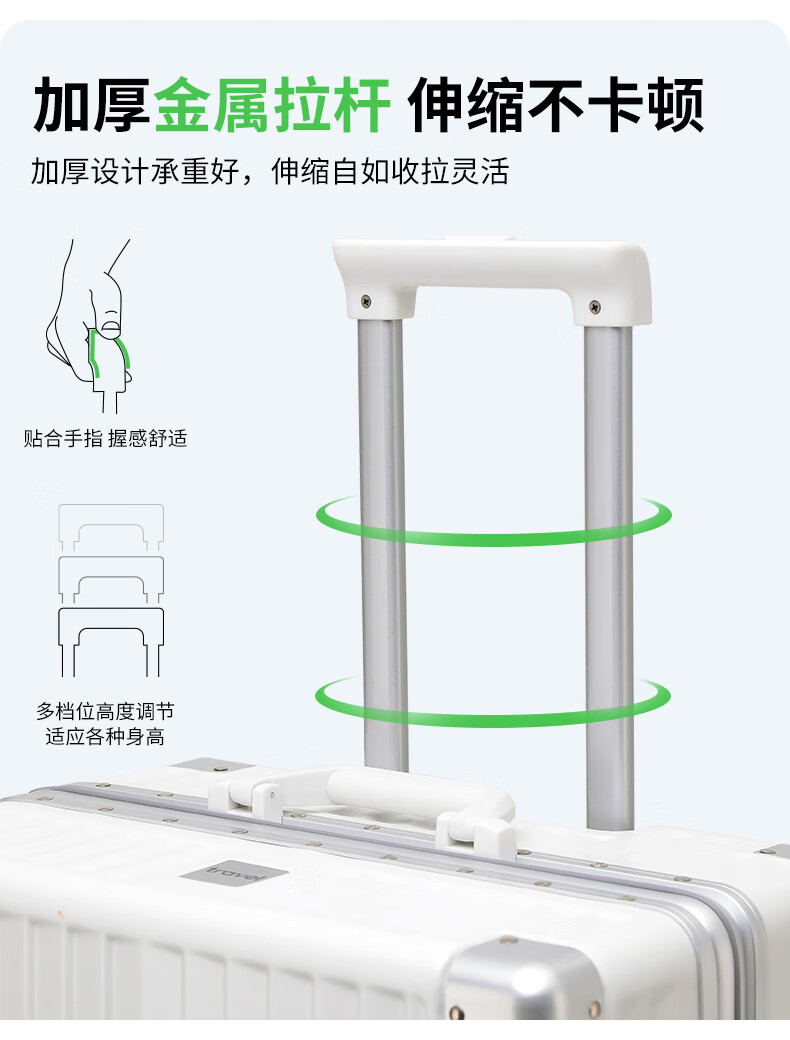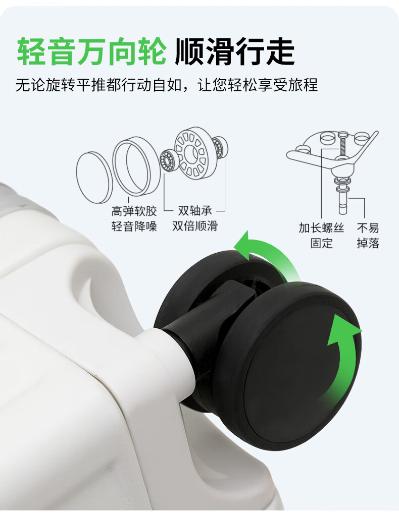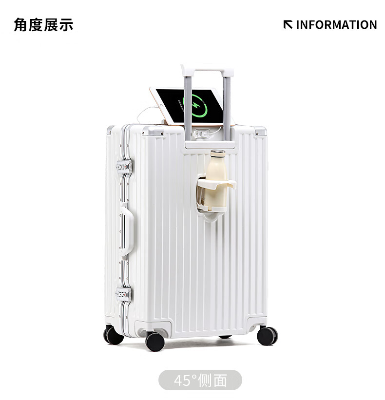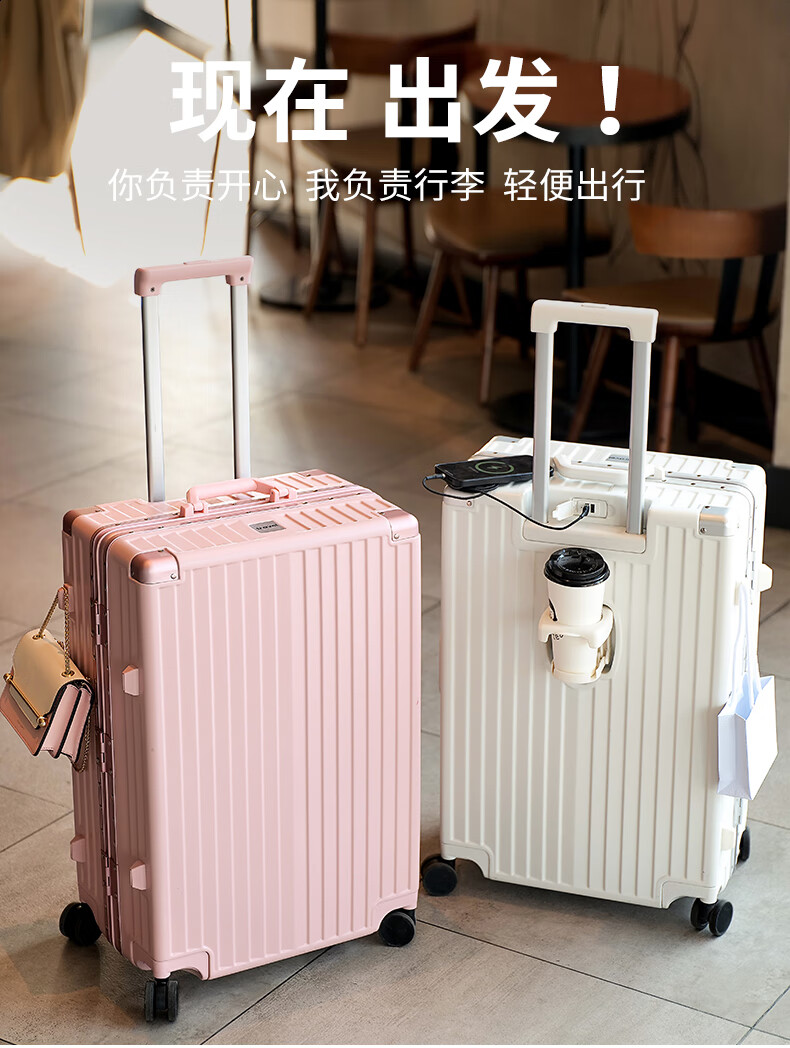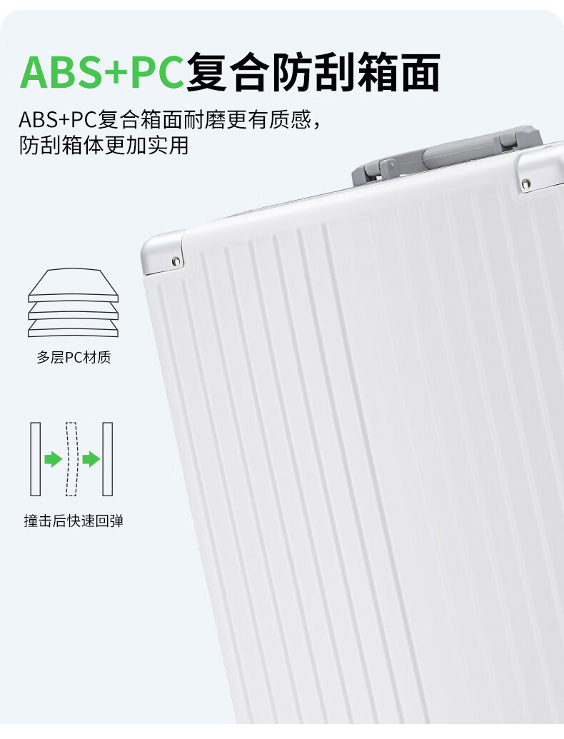 ABS+PC复合箱面耐磨更有质感,防刮;后背折叠杯架;轻音万向轮,顺滑好推拉耐用耐磨装的越多越顺滑