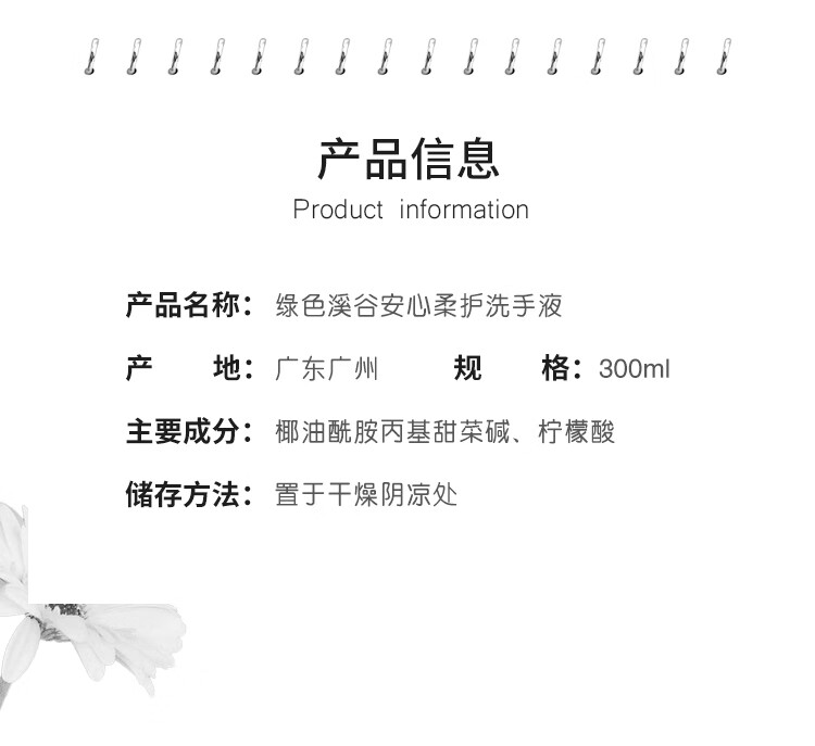 绿色溪谷 安心柔护洗手液无香型300m1