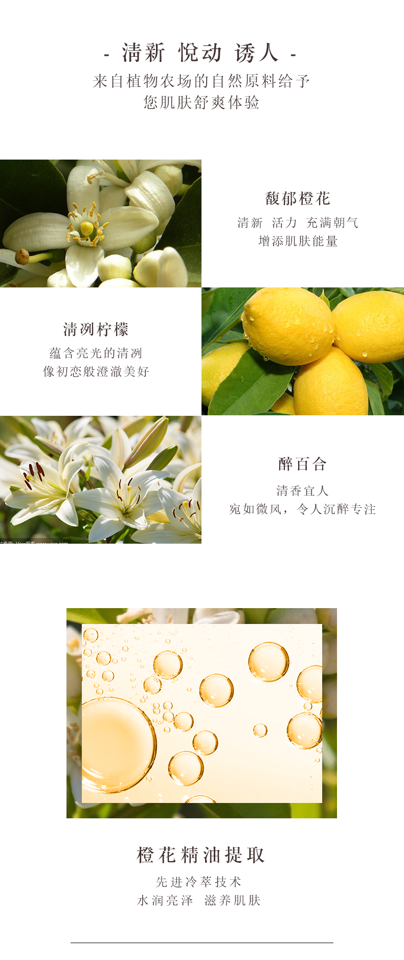 橙花精华;亲和润肤;滋润丝滑