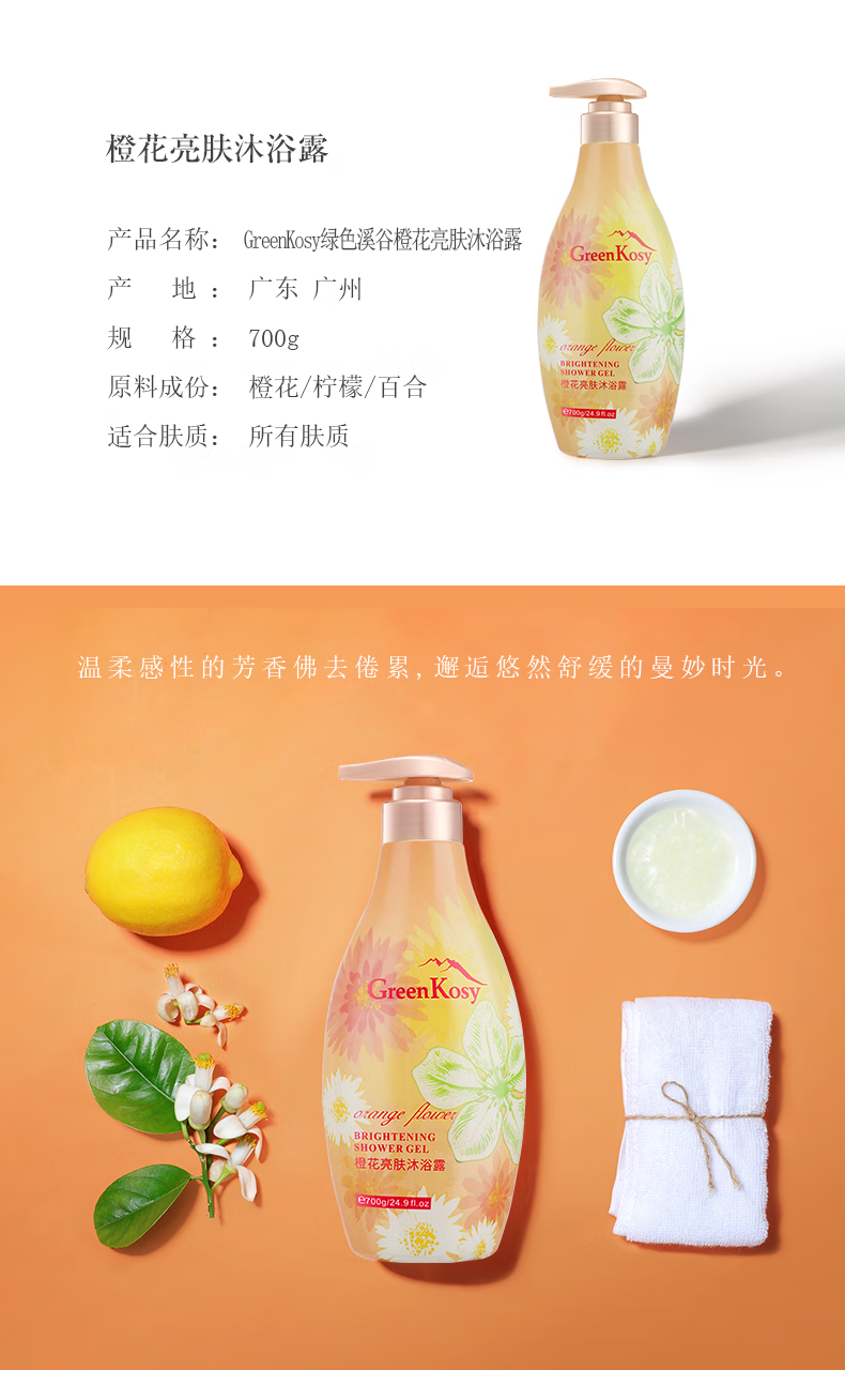 绿色溪谷 橙花亮肤沐浴露700g
