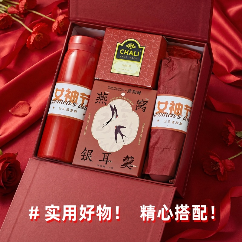 组合:保温杯300ml、6骨防晒胶囊伞、燕窝银耳羹15g、茶里经典红茶2g*2袋