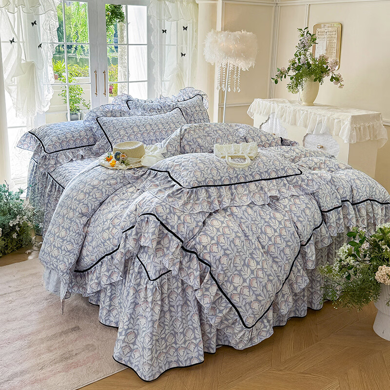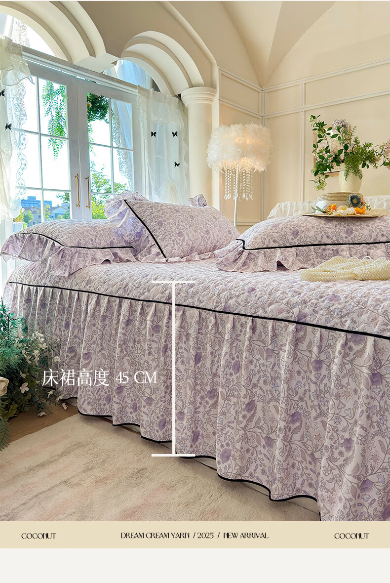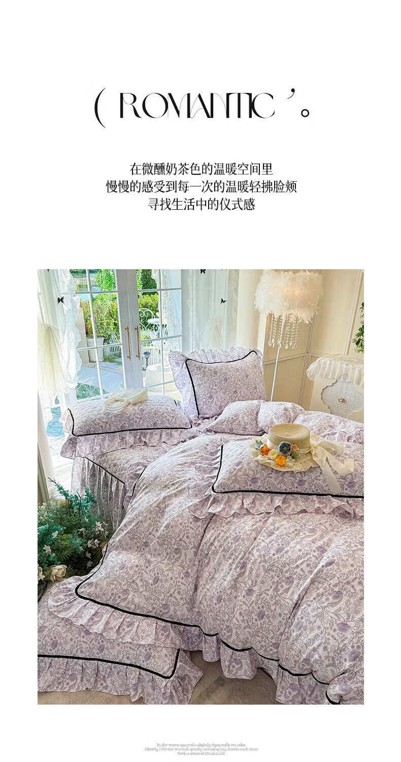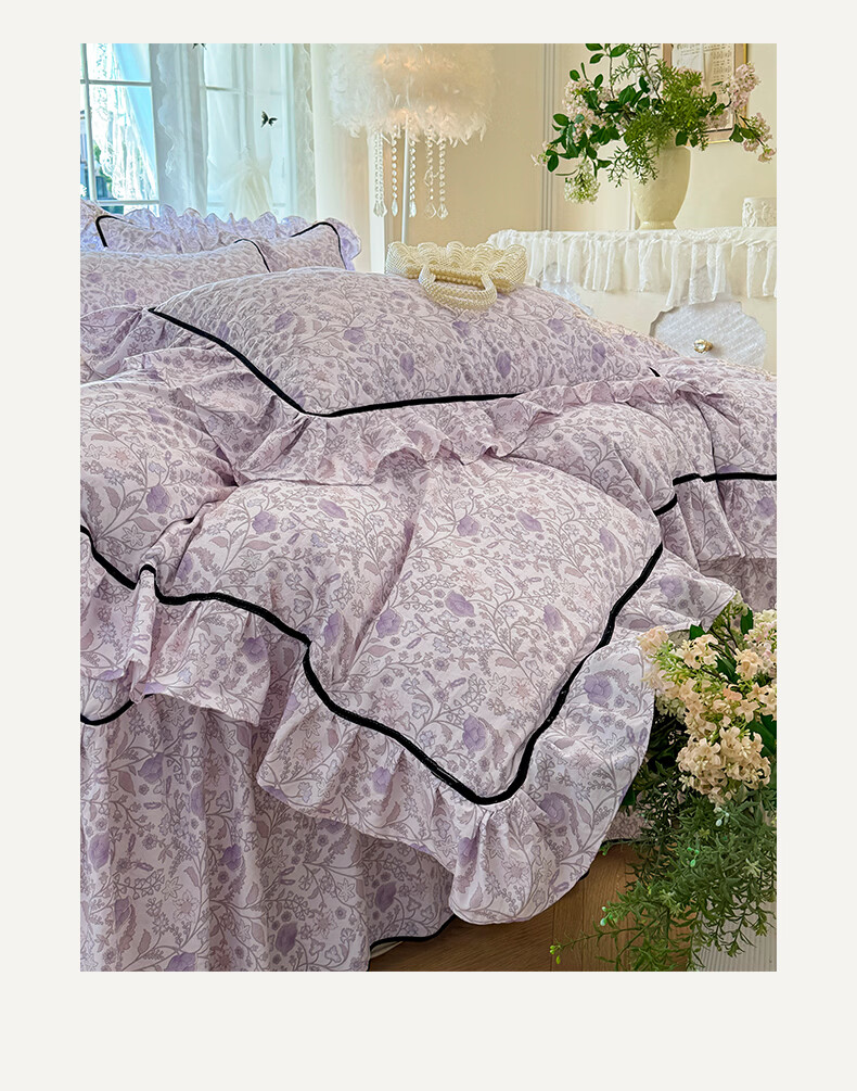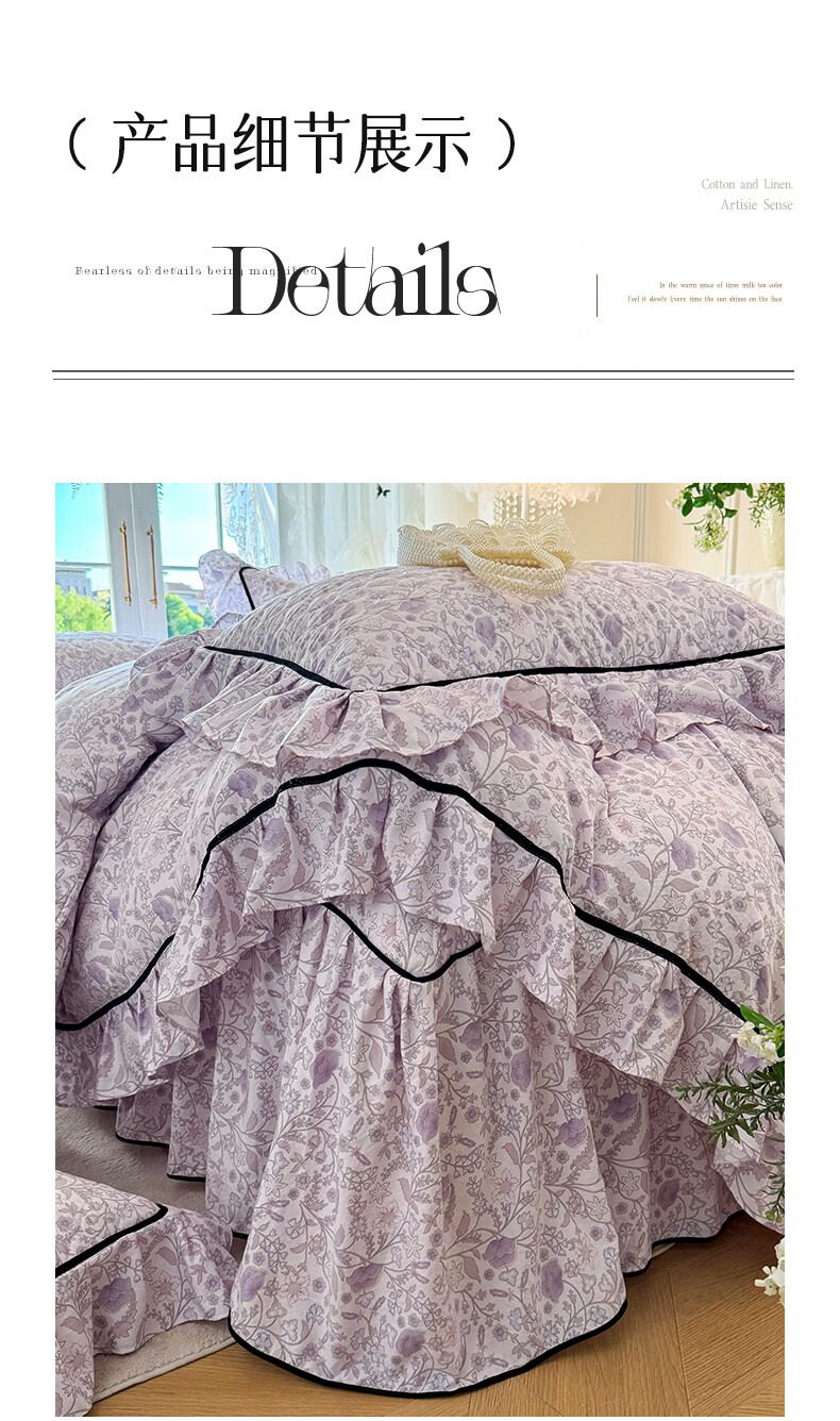裙摆是自带 蓬松感的大荷叶边,自带法式复古柔美感;裙长适配多数床型,铺好就是 卧室 “软装亮点”;水洗工艺加持,多次机洗后依旧不褪色、不起球