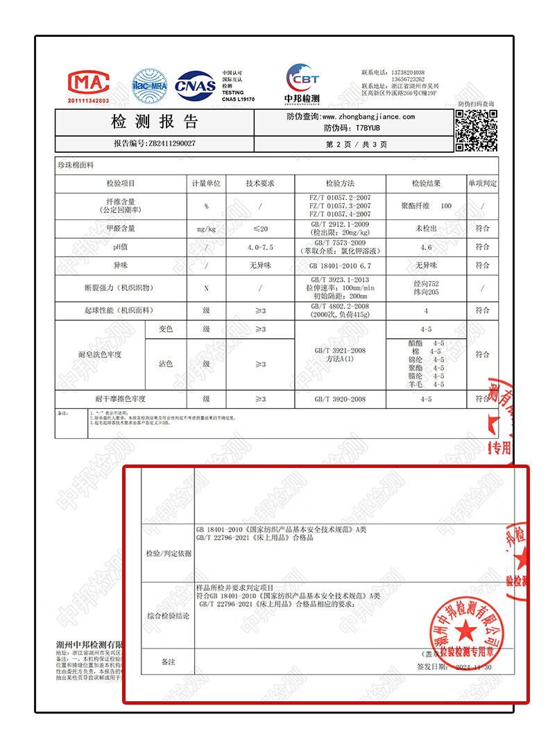 被里材质:水洗珍珠棉