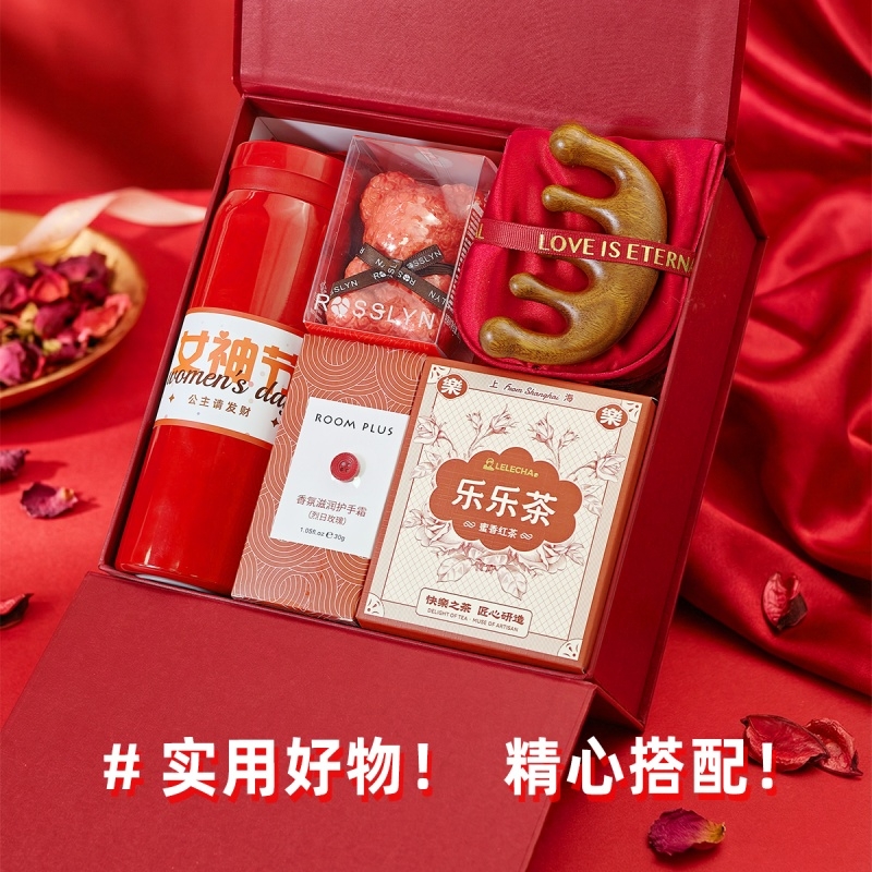 组合:保温杯300ml、眼罩+按摩梳组合、乐乐茶繁花蜜香红茶2g*2袋、罗斯琳玫瑰小熊香氛皂100g、ROOM PLUS 香氛护手霜30g
