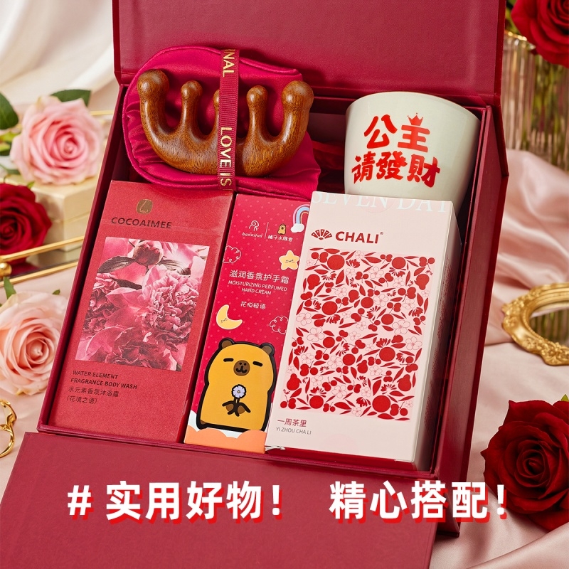 组合:眼罩+按摩梳组合、公主请发财主人杯、茶里一周茶2g*7袋、可可艾米水元素沐浴露188ml、韩方莉卡皮巴拉滋润护手霜60g