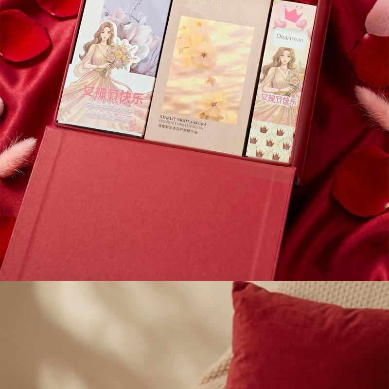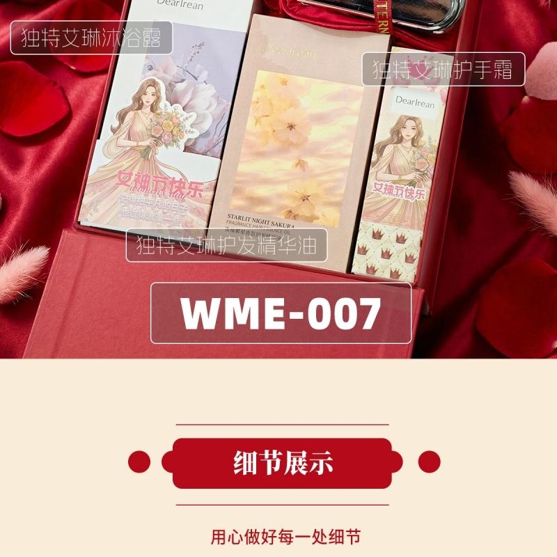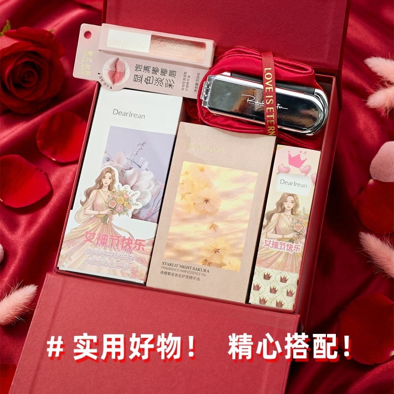 组合:眼罩+镜子气囊头梳组合、独特艾琳护唇精华油9.5g、独特艾琳沐浴露350ml、独特艾琳护发精华油40ml、独特艾琳香氛护手霜35ml