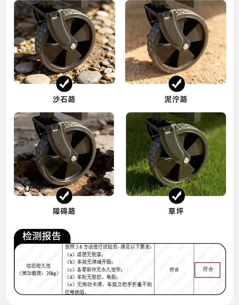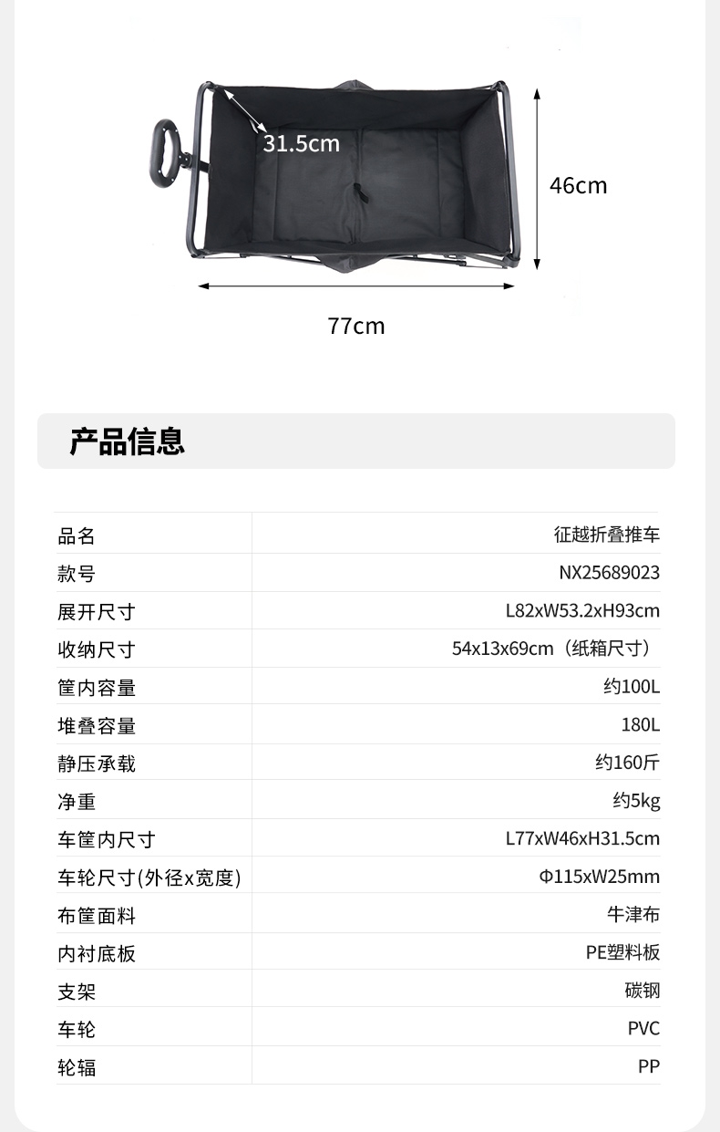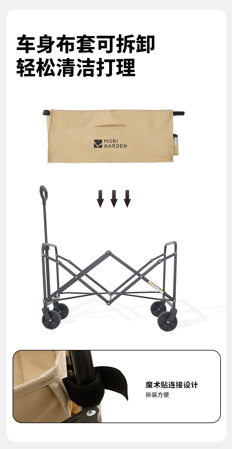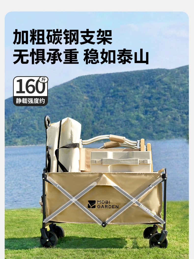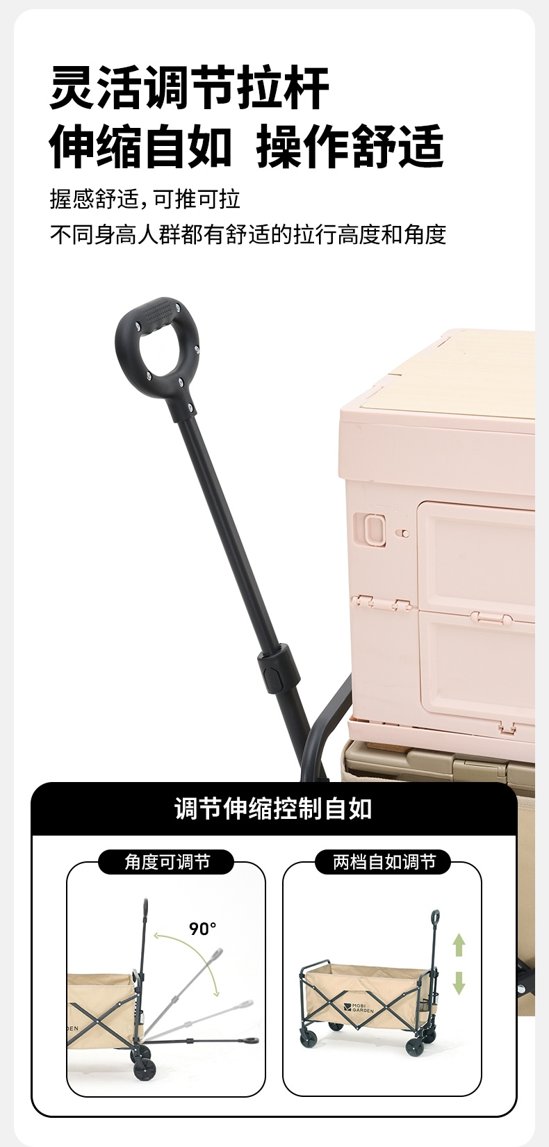 大容量设计,全家装备一车带走;布套可拆洗,360度同轴转向轮(前面2轮);可伸缩手柄、折叠便携设计;带刹车轮设计