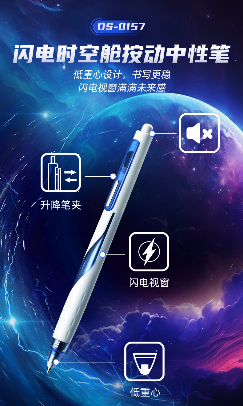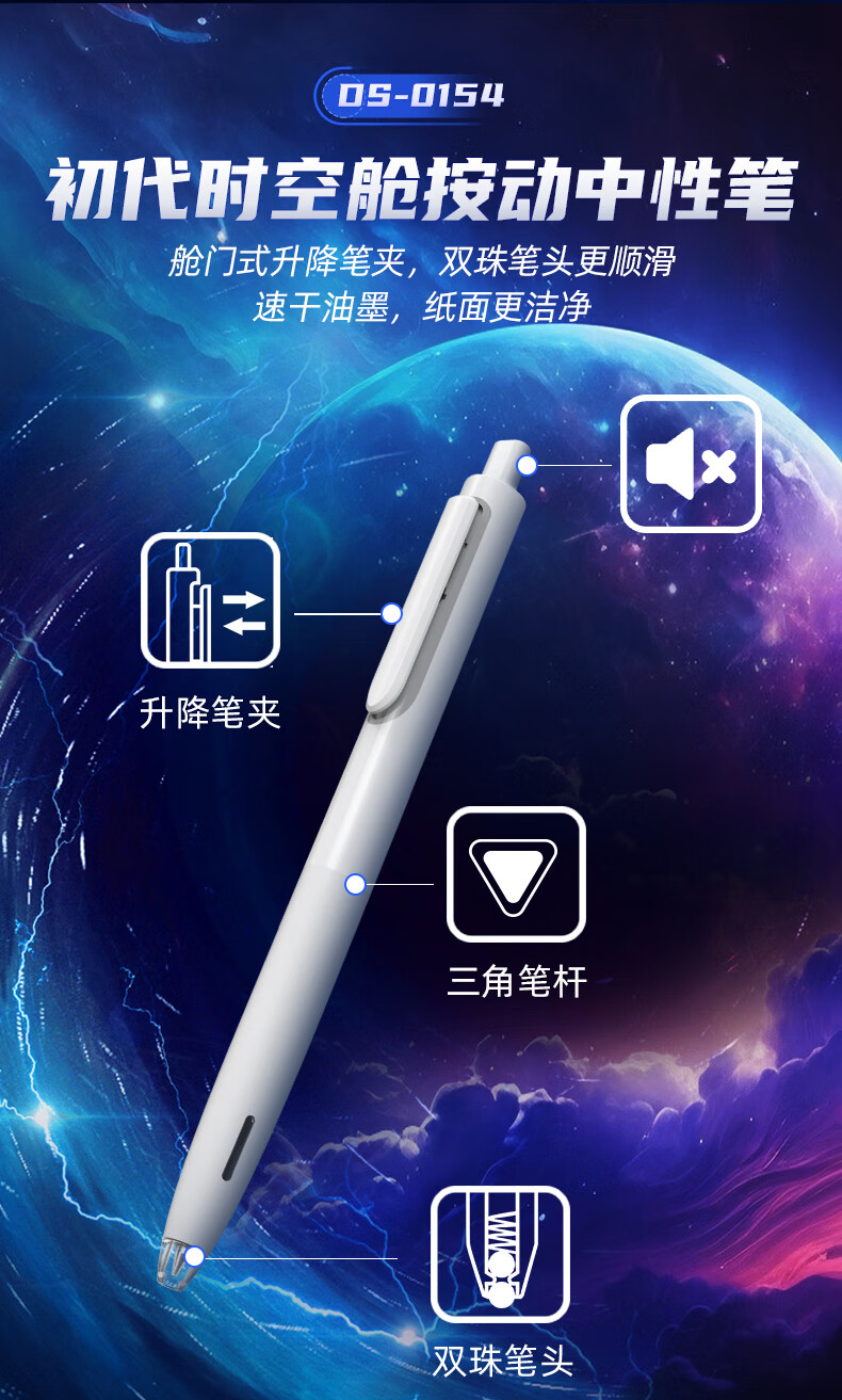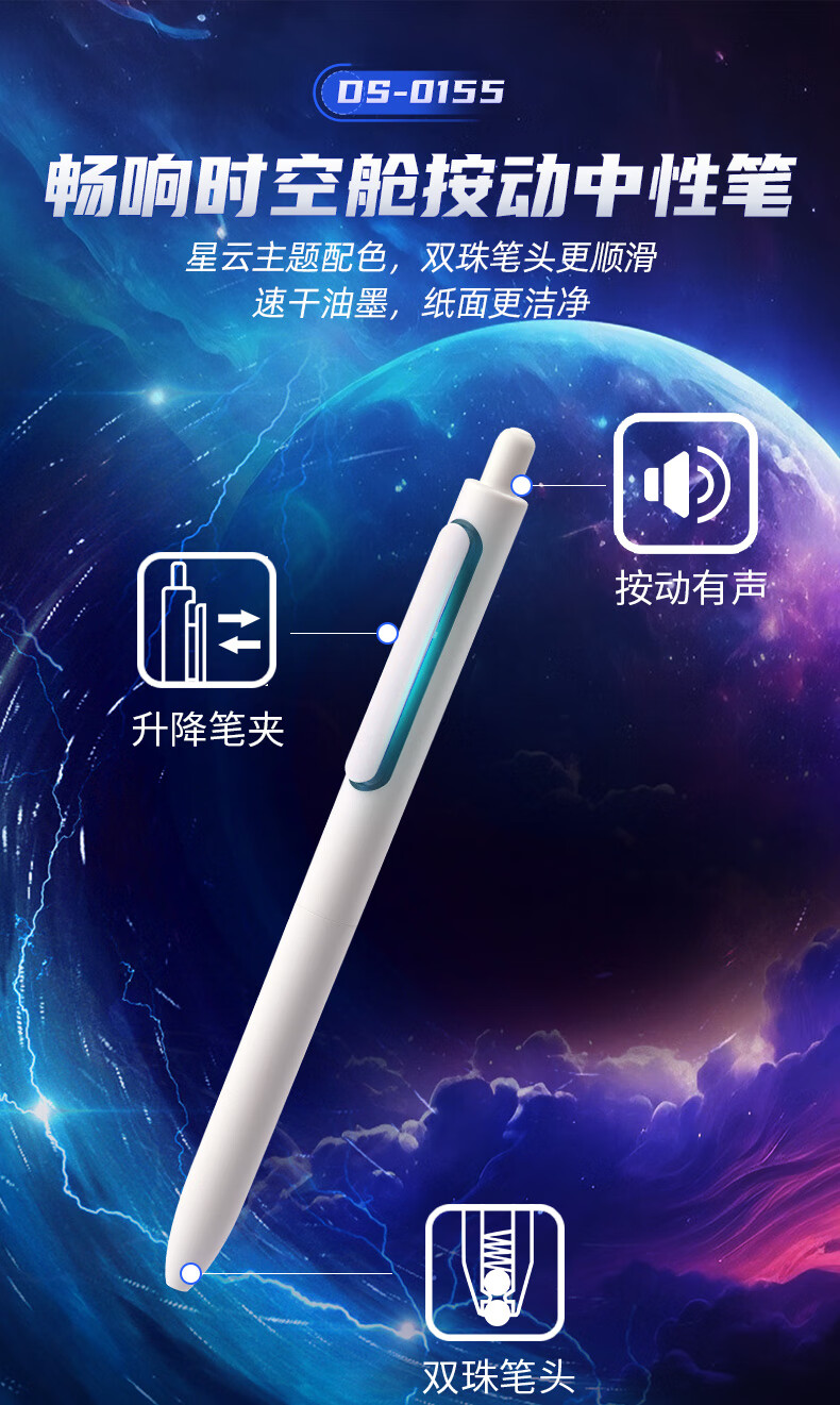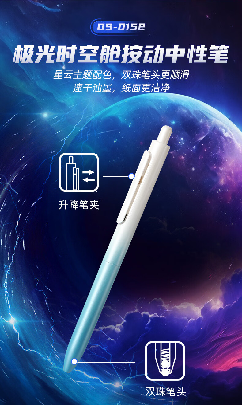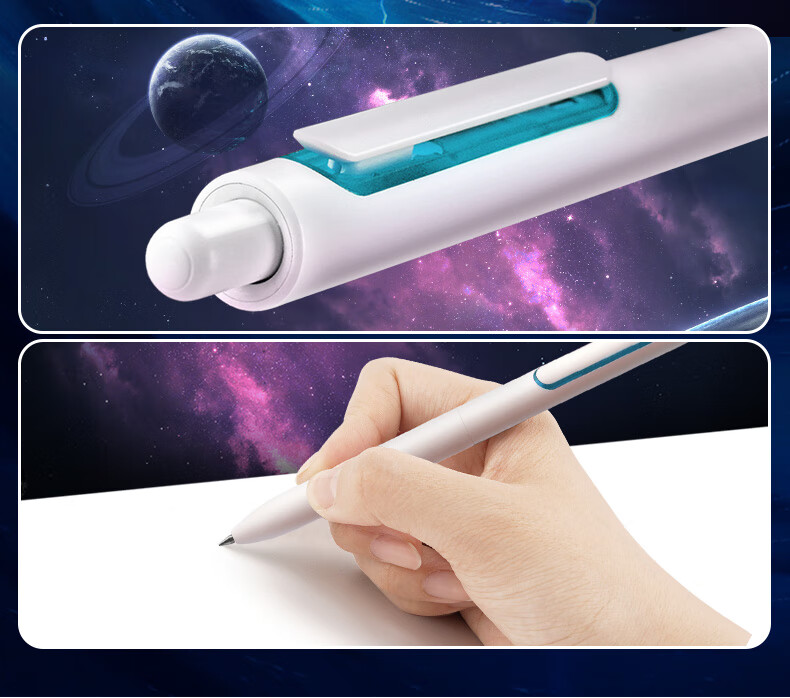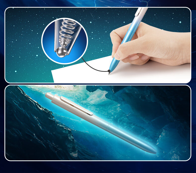 虫洞造型,旋转出芯;双珠笔头,书写更顺滑;低重心书写更省力