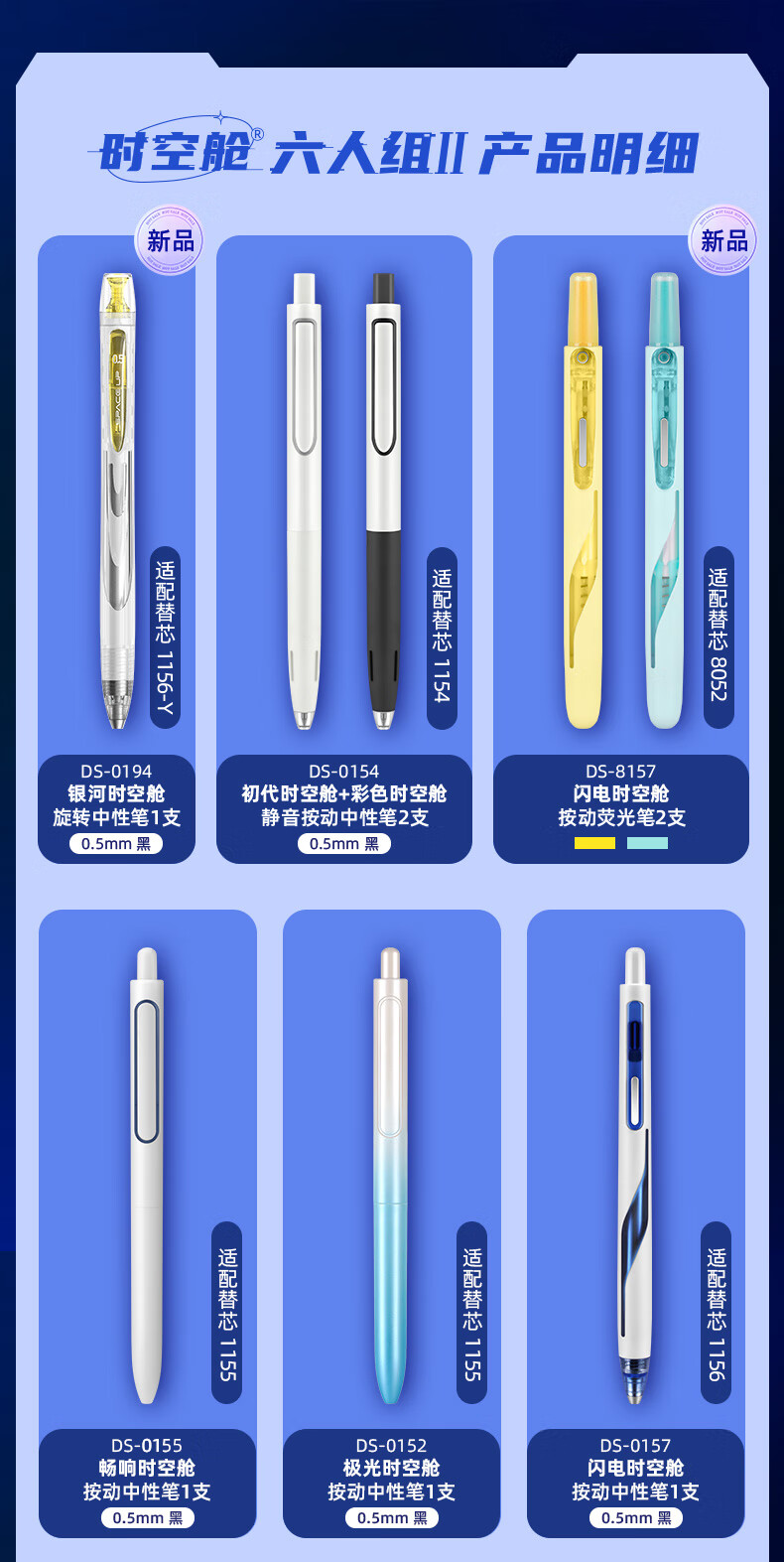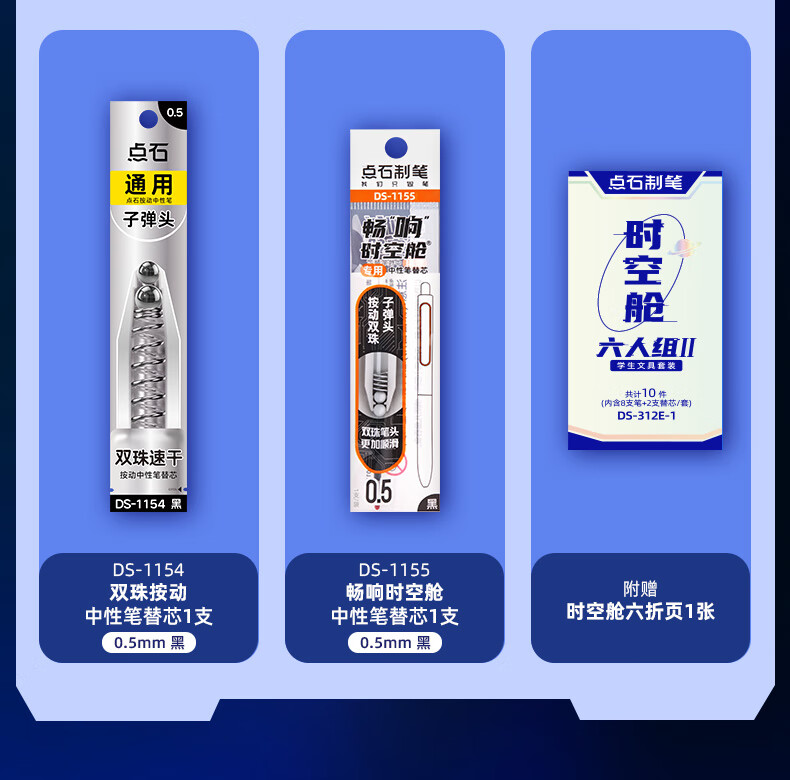 配置:选时空舱系列8支笔,内赠2支中性笔替芯