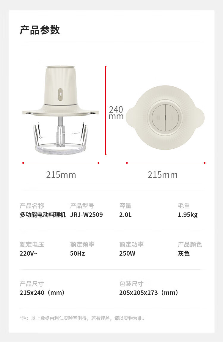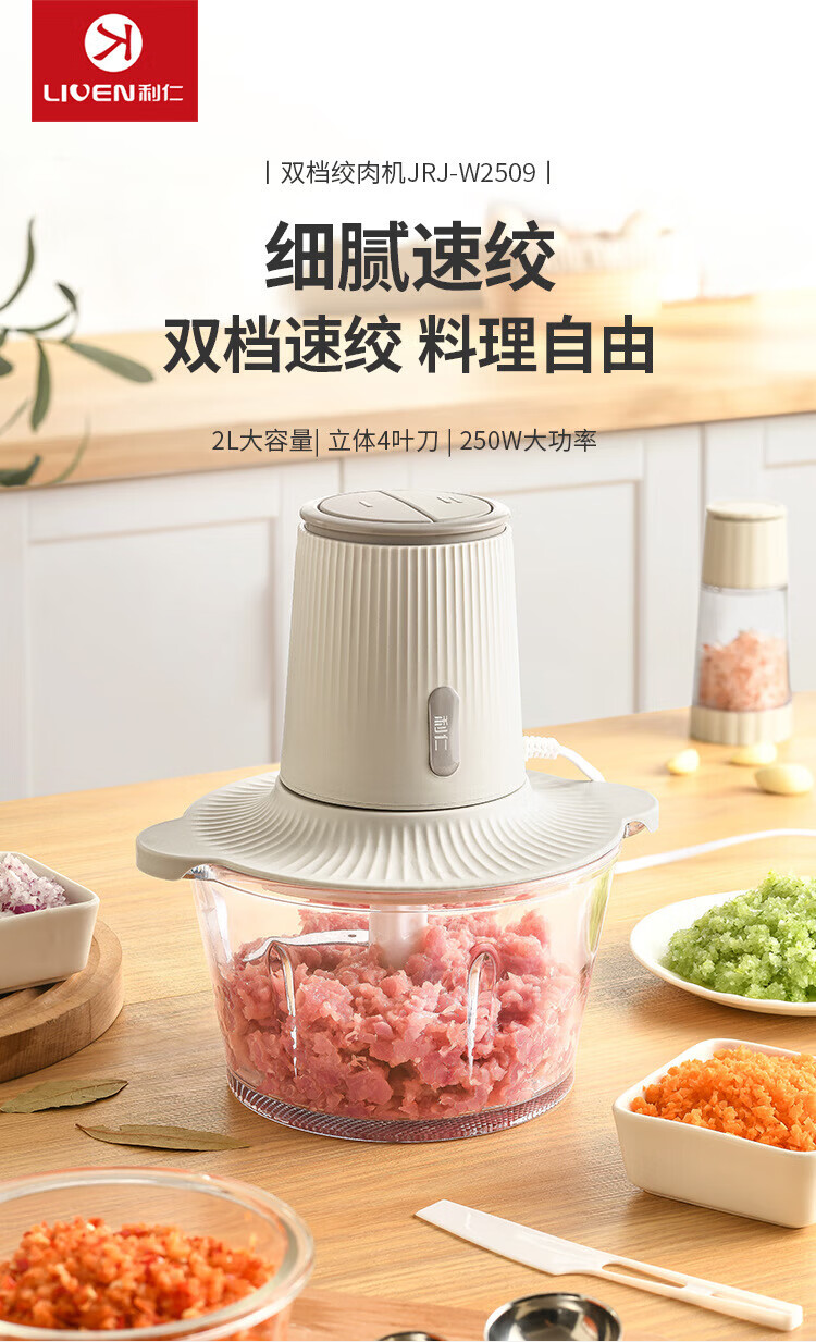 利仁 电动绞肉机2L立体4叶刀JRJ-W2509