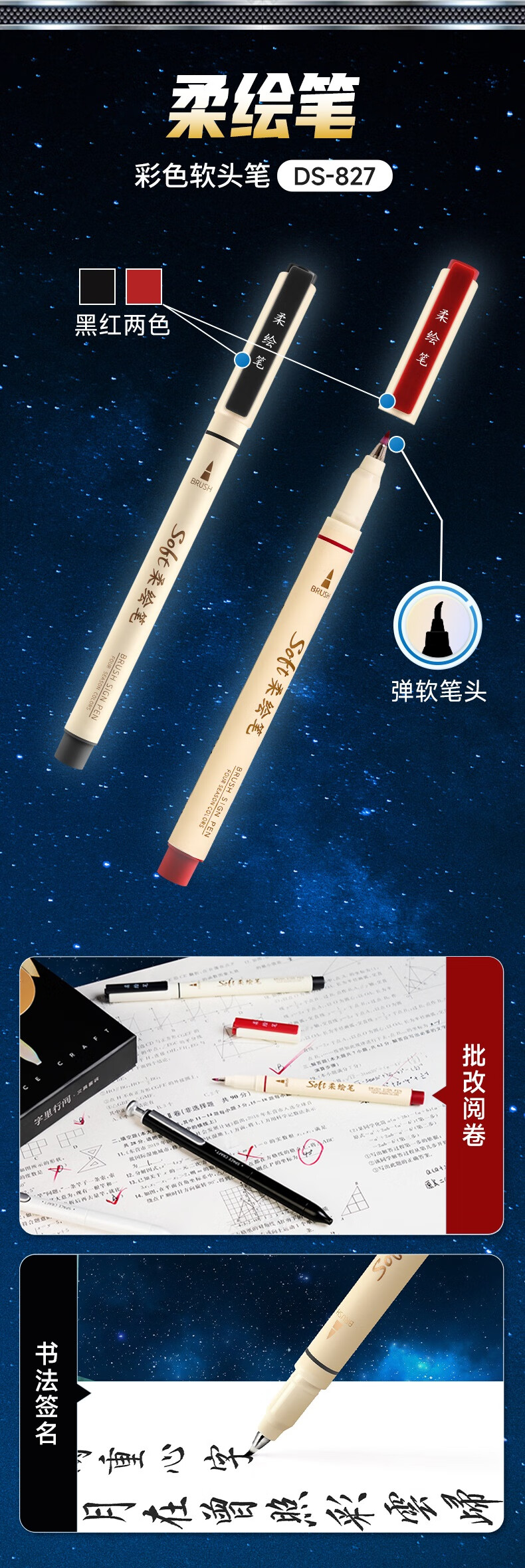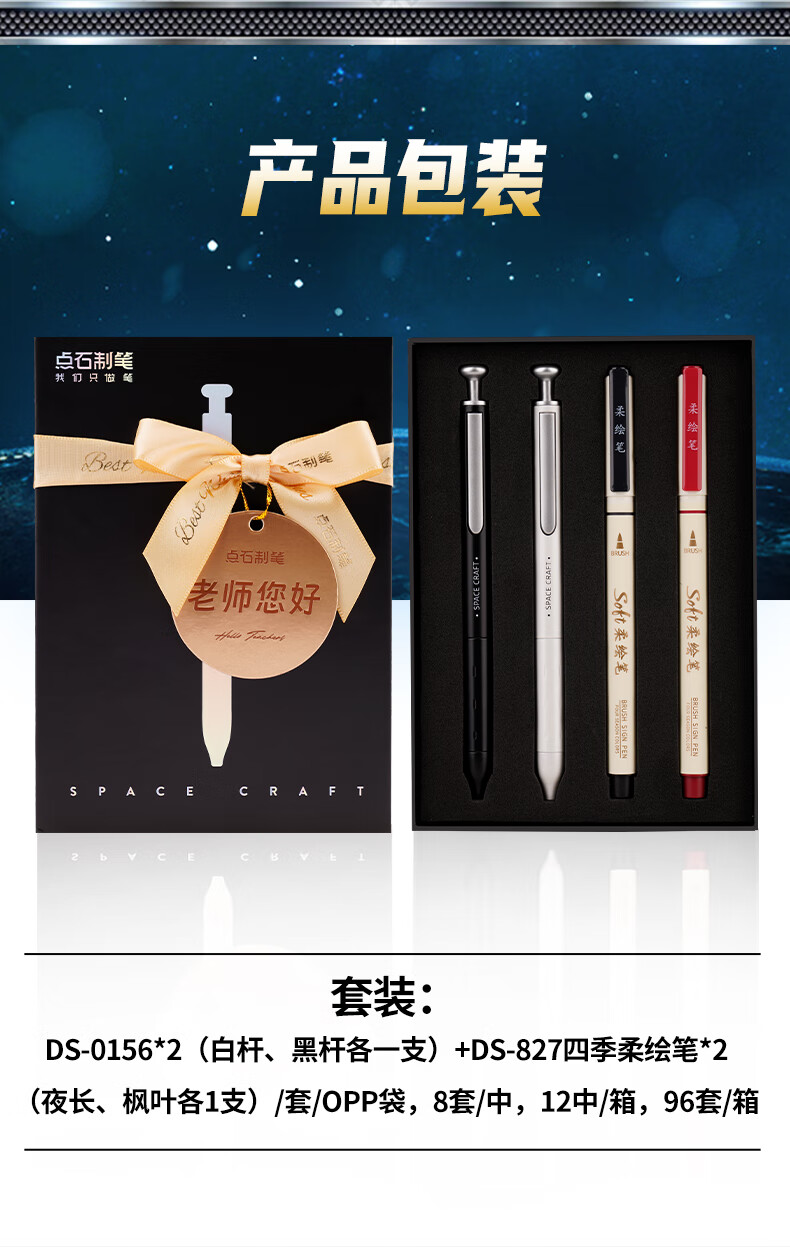 配置:白杆、黑杆各一支,四季柔绘笔*2