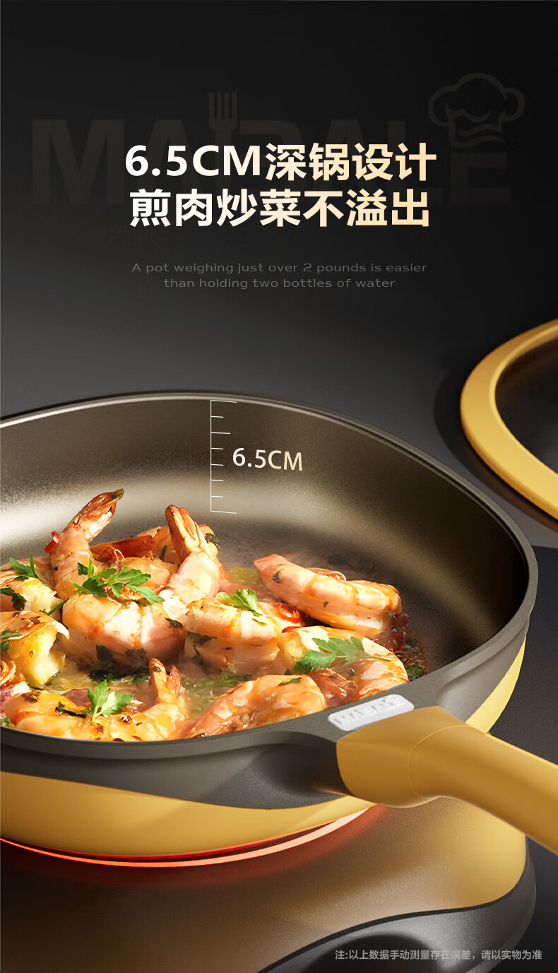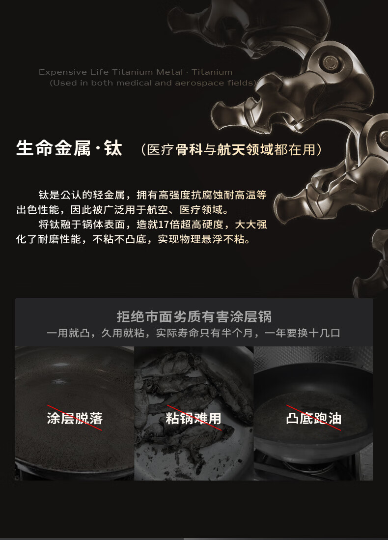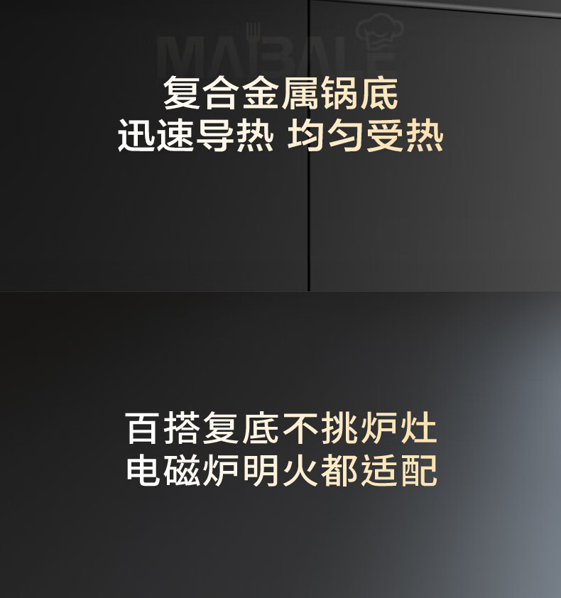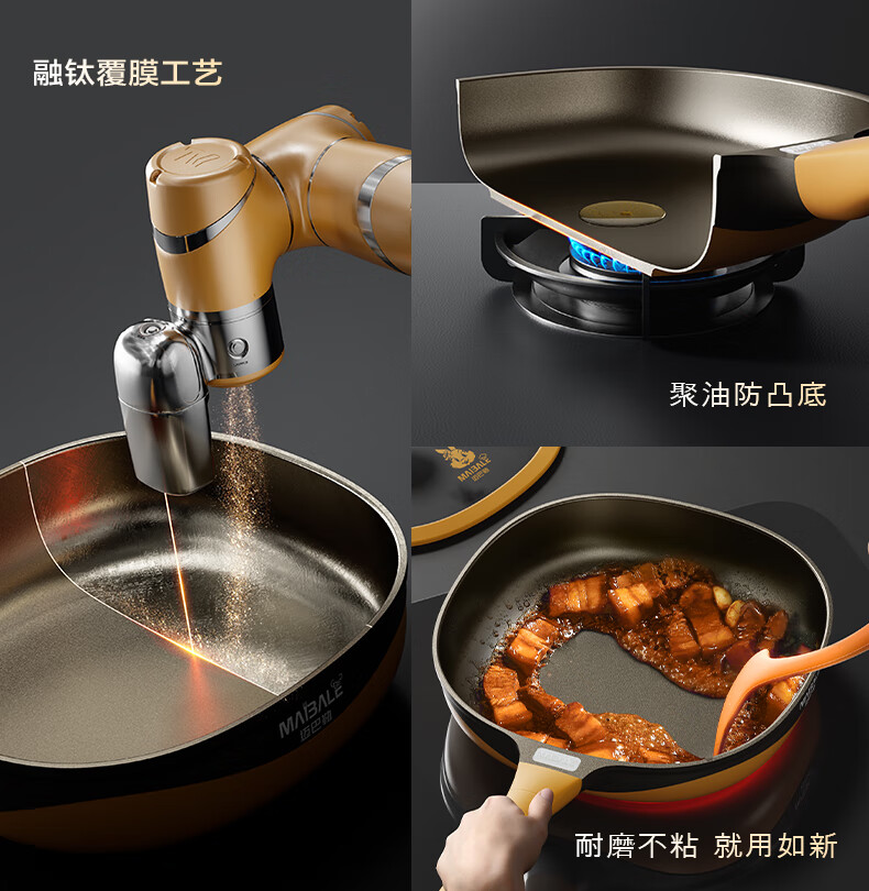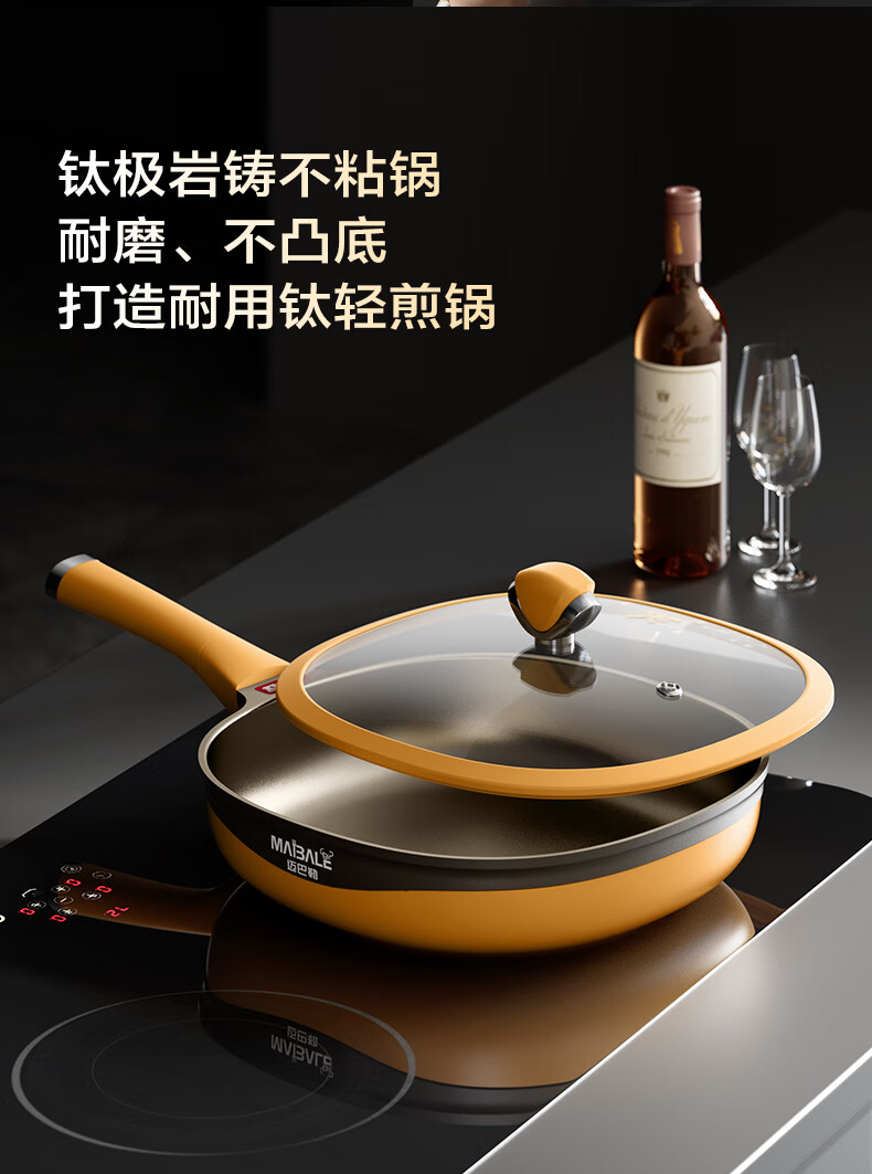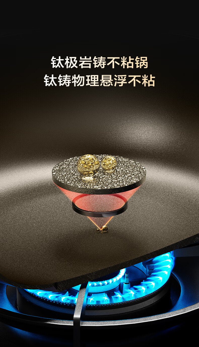 不易粘锅 少油烟 可聚油;燃气灶 电陶炉 电磁炉通用;含钛涂层