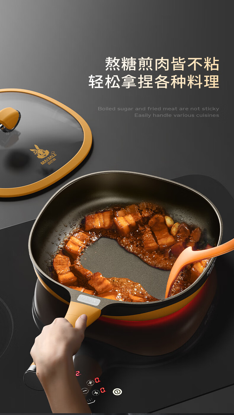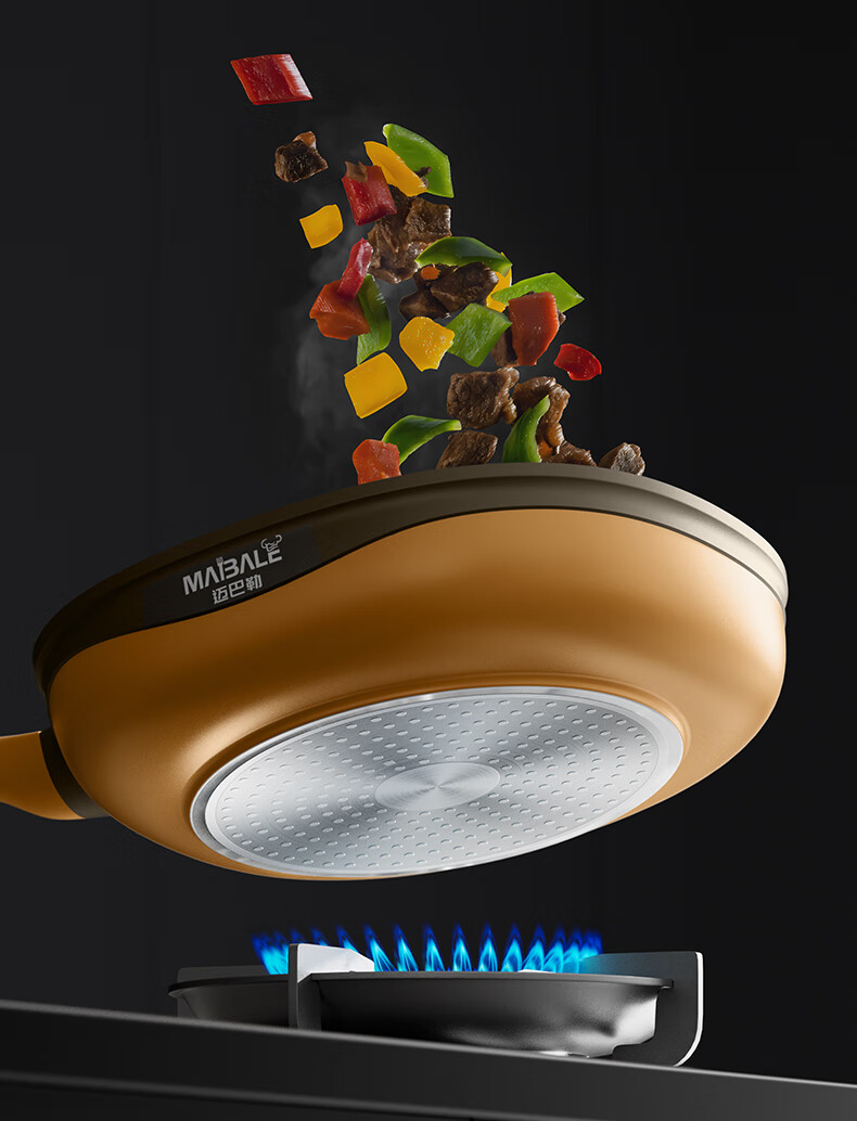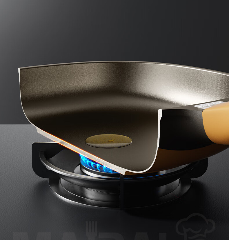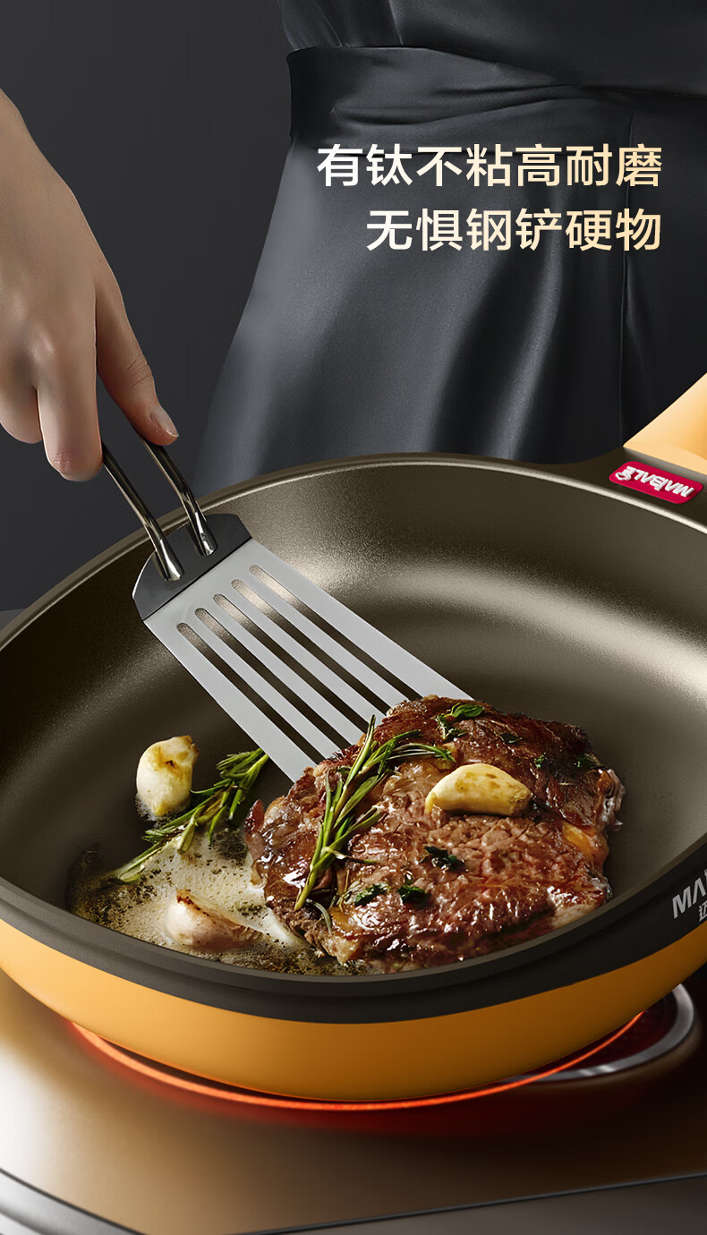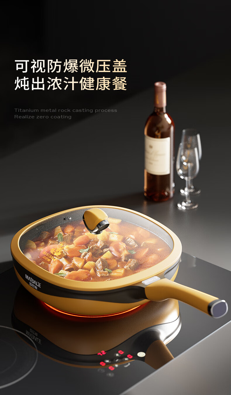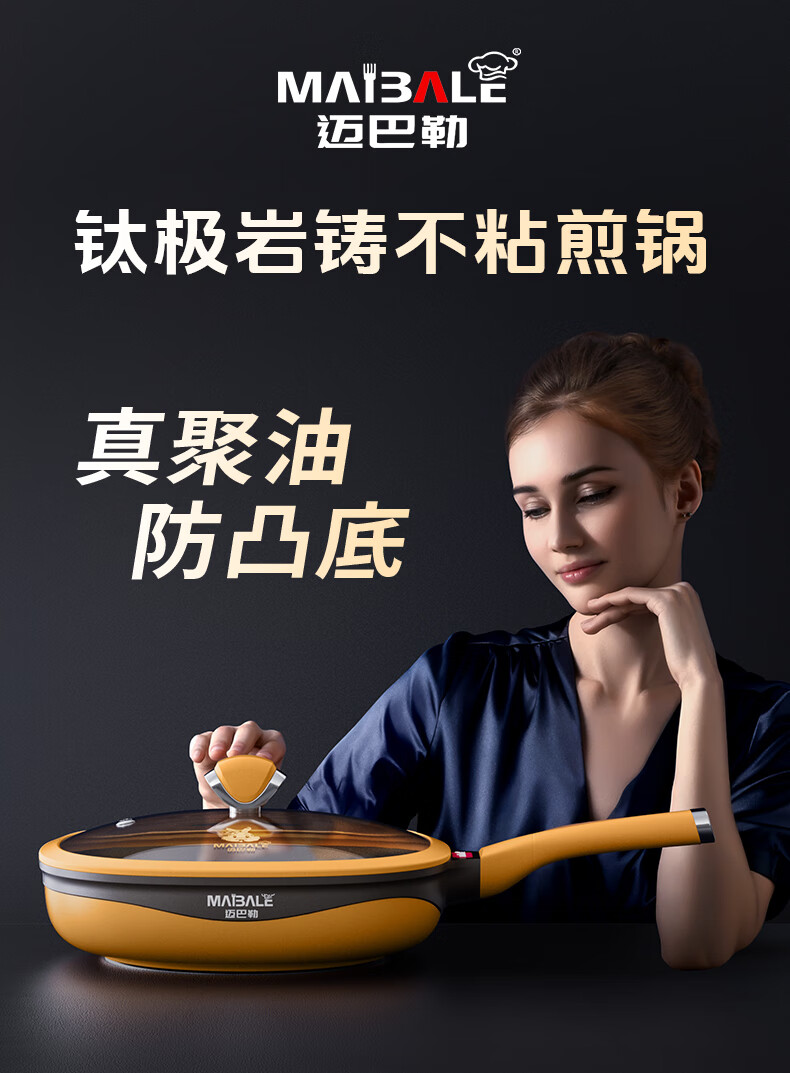 不易粘锅 少油烟 可聚油;燃气灶 电陶炉 电磁炉通用;含钛涂层