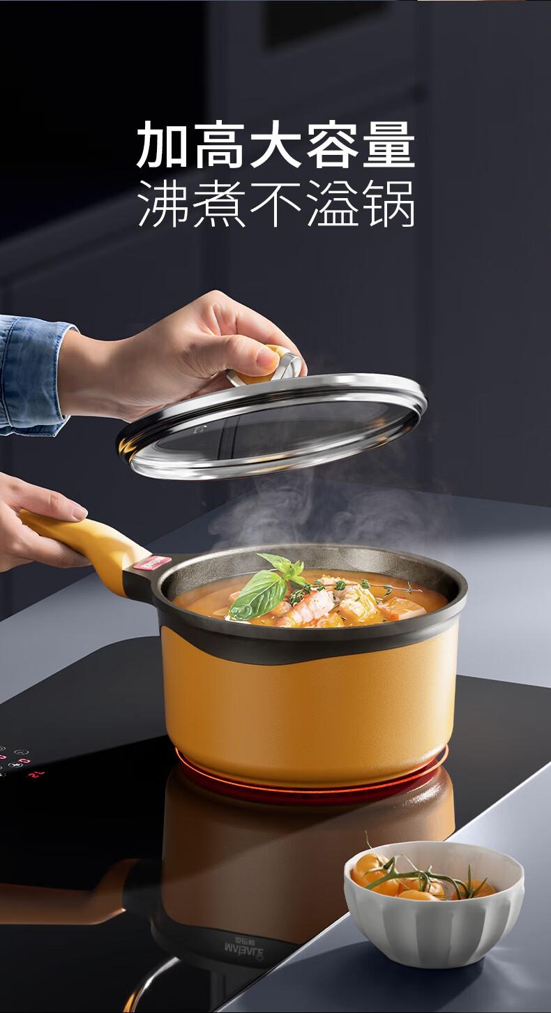 加高锅身,防溢锅自在炖煮;防刮耐磨,经久耐用;锅体含钛,清洗更方便