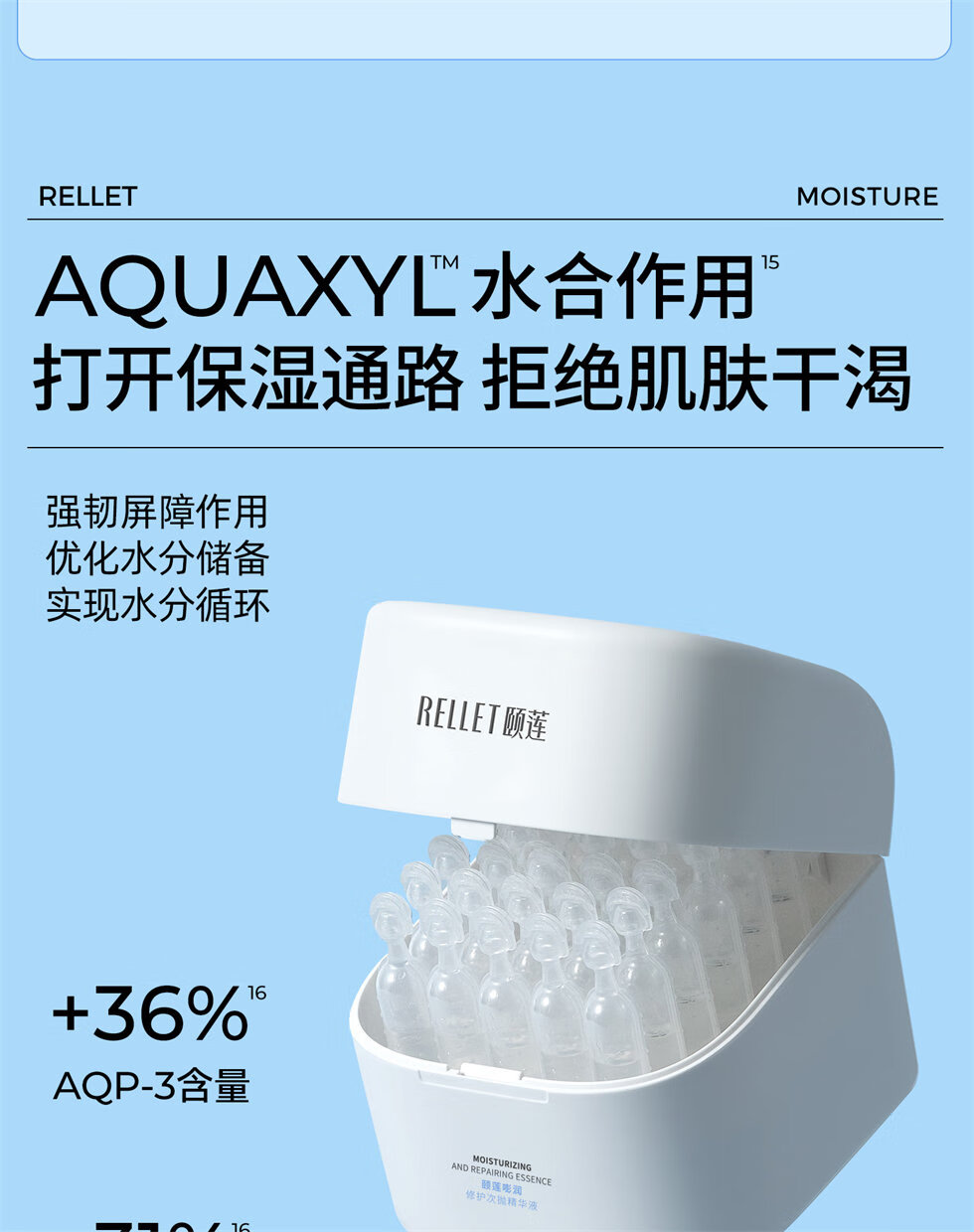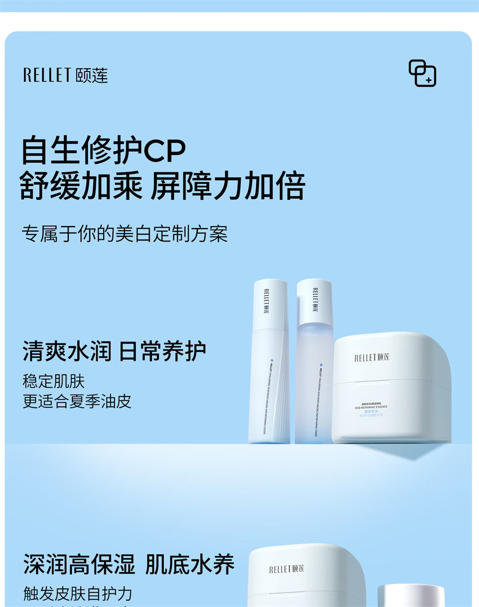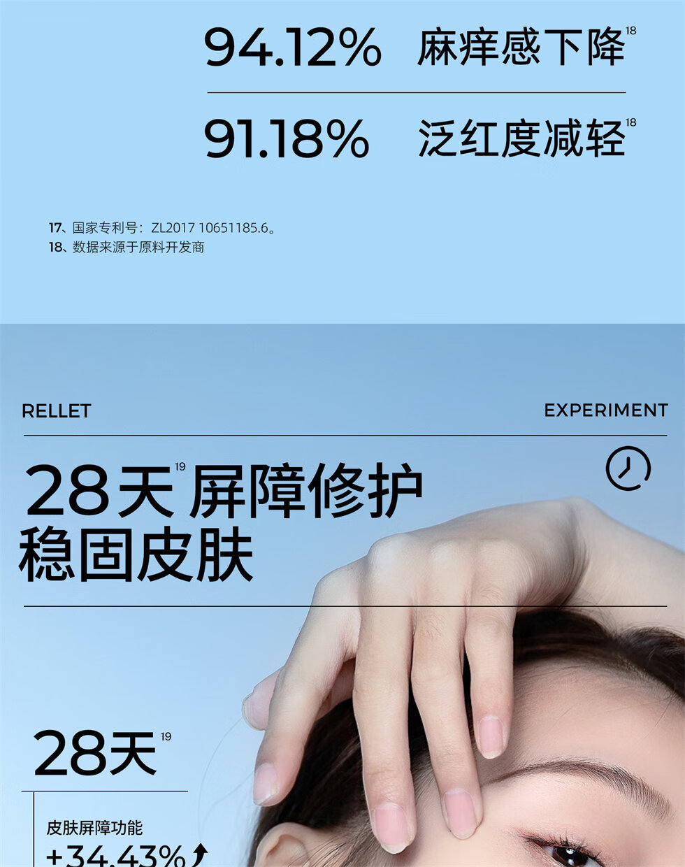 优化水分储备 实现水分循环;强韧屏障作用;专利甘草酸二钾+2%积雪草及时舒缓