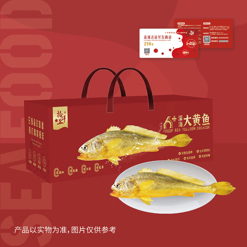 深海半野化黄鱼1000±g;红色元素包装 应节应景;品质与口感接近野生,风味优势明显