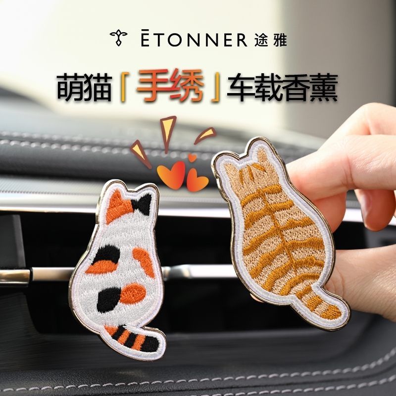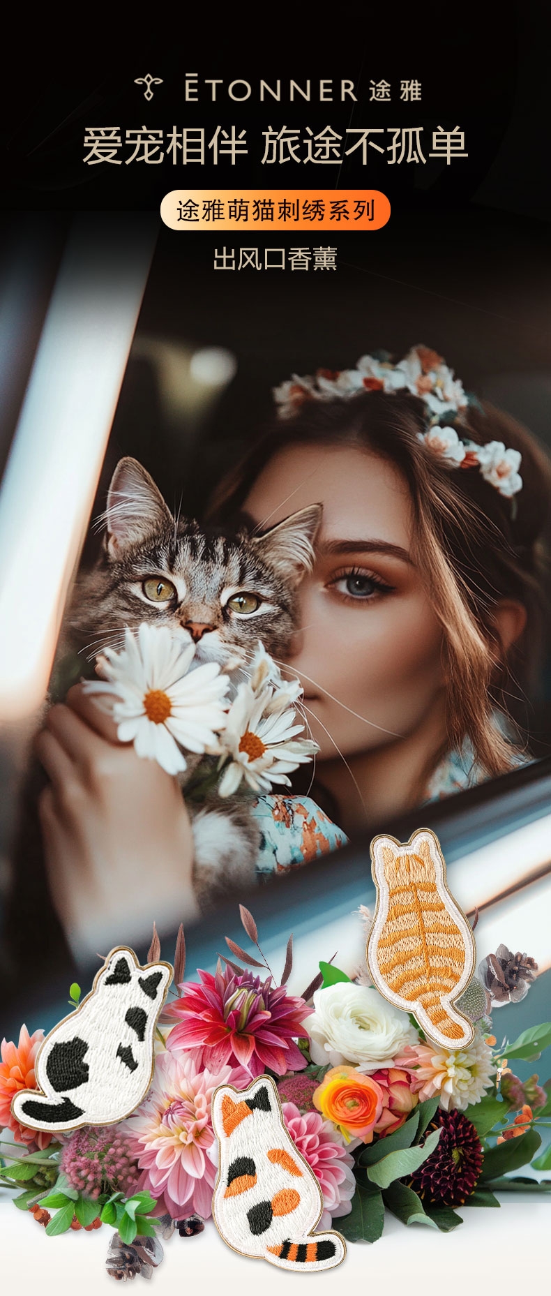 途雅 出风口香薰对装奶牛猫和三花猫N1838C