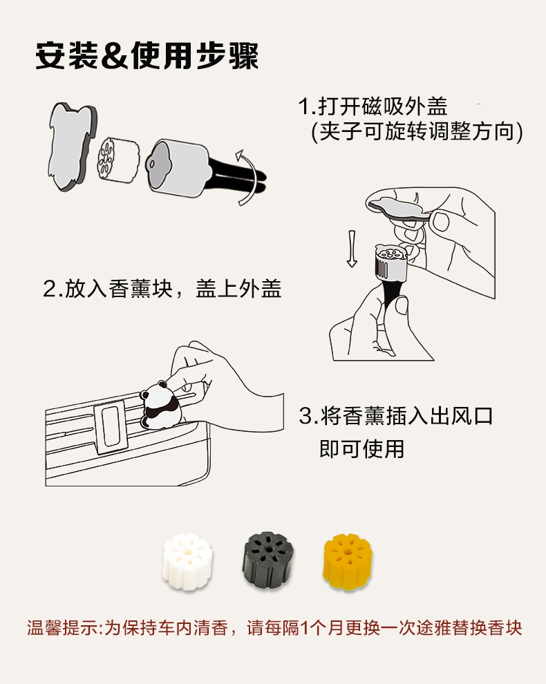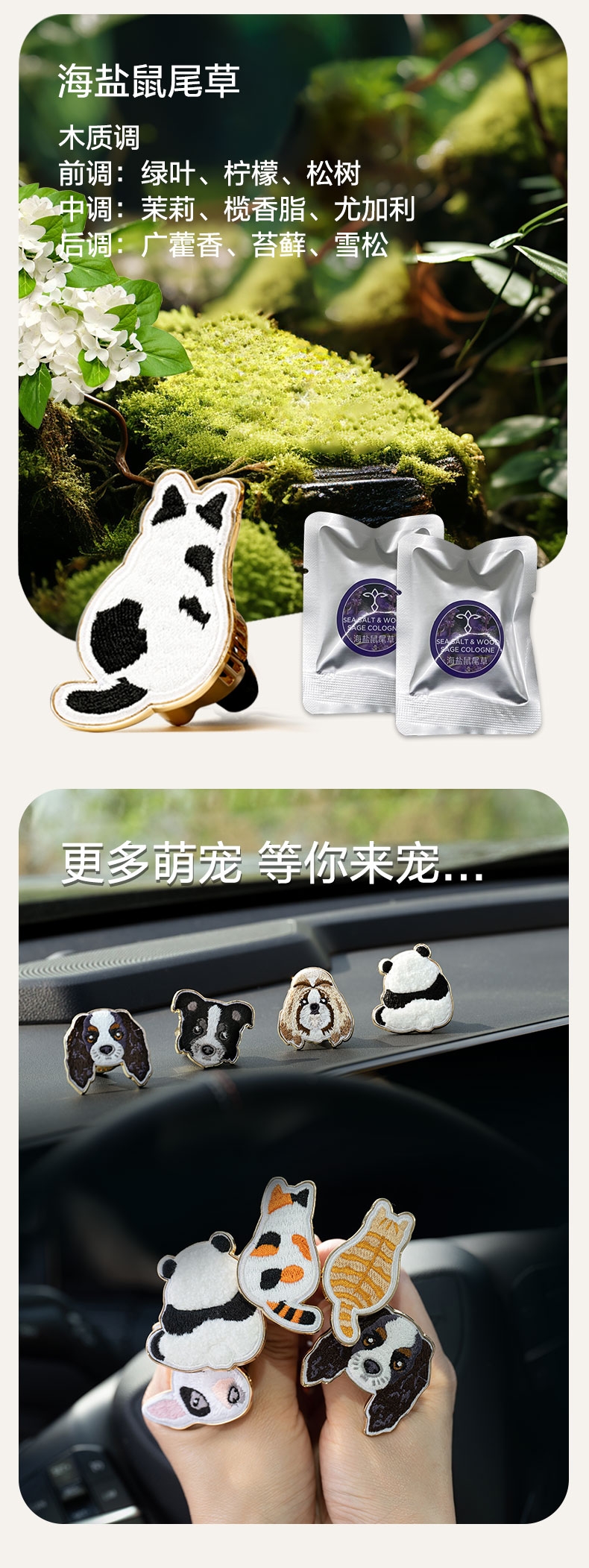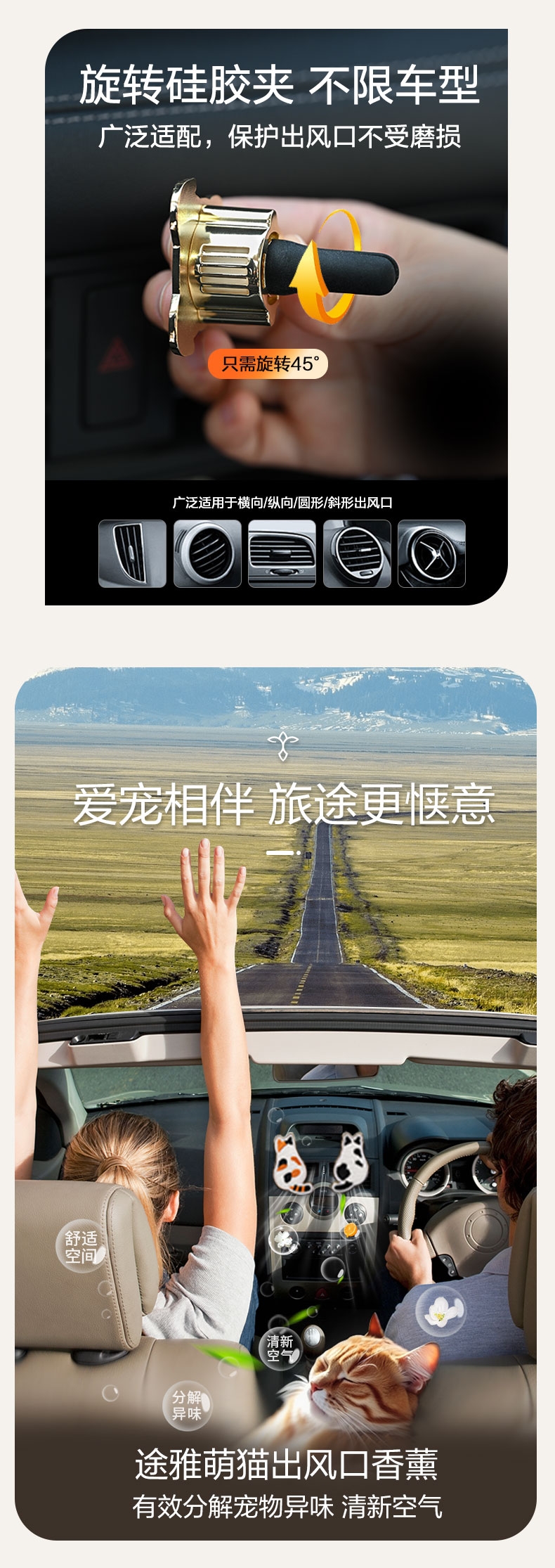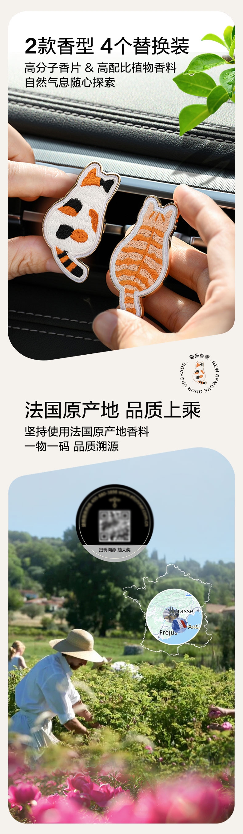 配置清单:萌猫出风口香薰-对装(橘猫+三花猫)高分子固体香块(海盐鼠尾草2+雨露丹桂2)礼盒+手袋