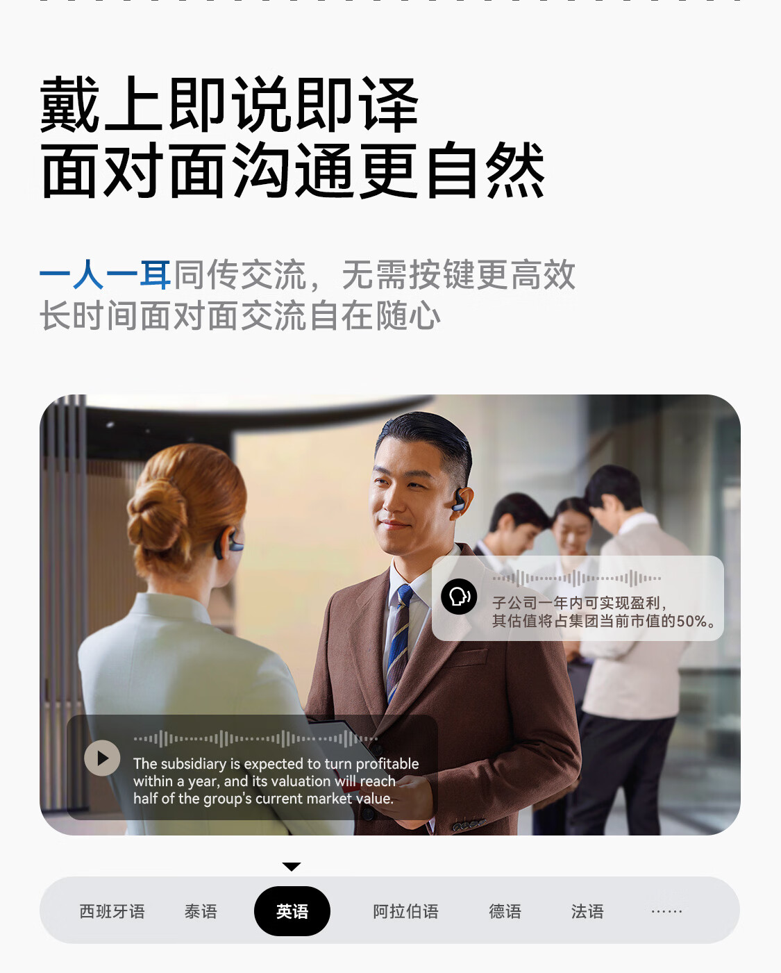 科大讯飞 科大翻译耳机同声传译器随身随录AIH-2541