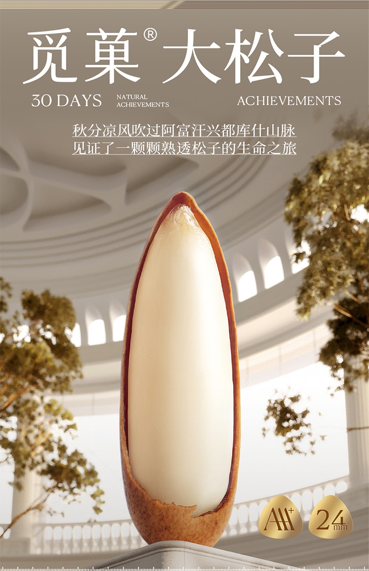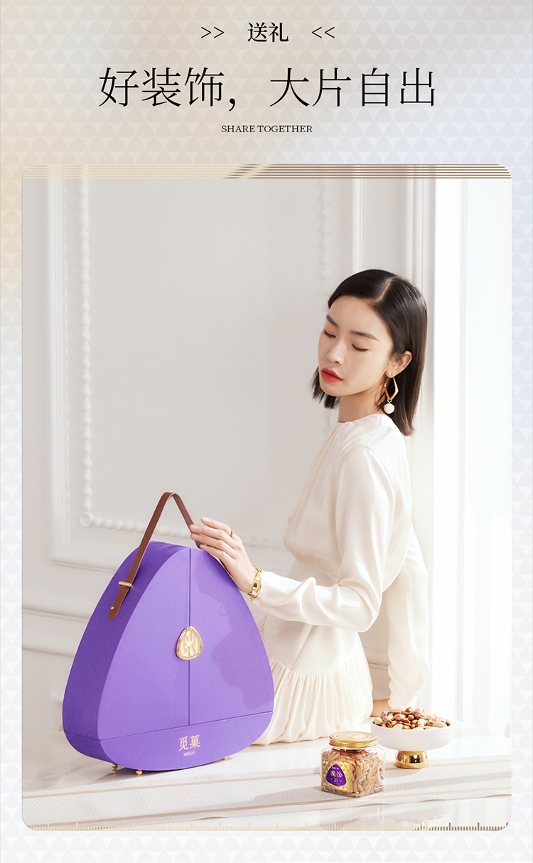 内含甄稀AAA+等级阿富汗手剥松子;独特双瓣开盒设计,仪式感十足;细腻凹凸绒纹搭配真皮提手,精致时尚